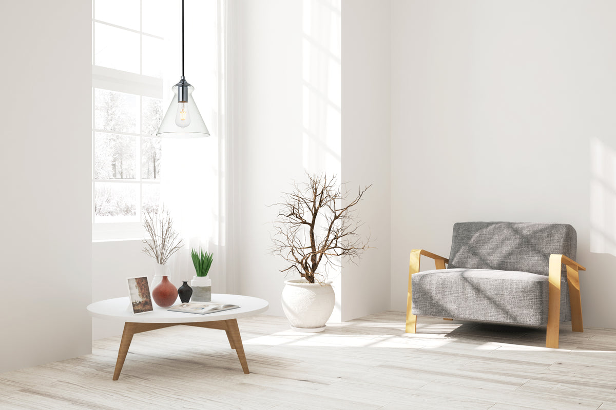 The small, but mighty Destry collection offers sleek pendant lamps that will add a powerful accent to your urban, industrial, or transitional décor. The light’s chrome hardware finish adds to the interest of the piece. Chrome 'top hat' design accentuates the clear glass shade. Each chrome and clear conical shade holds one incandescent or LED light bulb (not included). Brighten your kitchen island, bathroom, entryway, or den with this one-light statement fixture. You may adjust the height to your desired length between 15 and 69