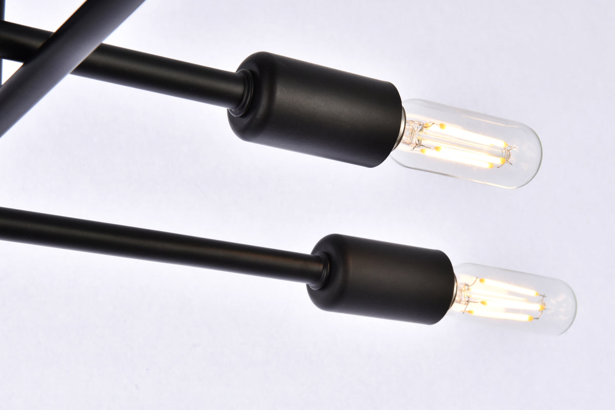The Script collection flush mount light is an excellent piece to add to your space. The unique shape will stand out as it lights up the room. Available in a black, brass, or chrome finish this will add style to your living room, foyer, or kitchen.This product is dimmable and requires eight E12 lamps. Light bulbs not included.
