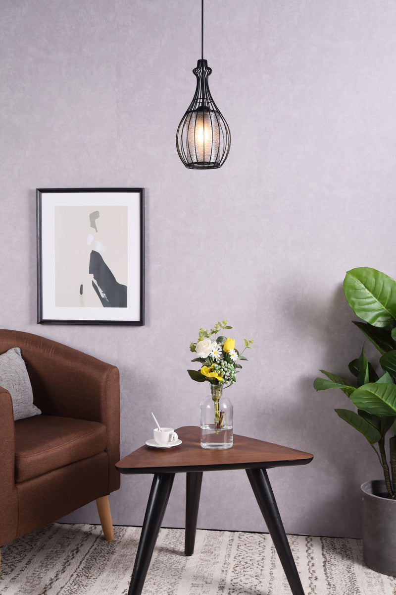 The calming elegance of the Miya collection 1-light hanging pendant will soothe your soul and elevate the contemporary aesthetics of your home. Light charmingly steps through the metal framework and acrylic shade with winding black paths, showing a radiant display of brilliance and dancing shadows. Its compact design renders it the perfect light for any sized room or home--dining room, living room, or entry way.