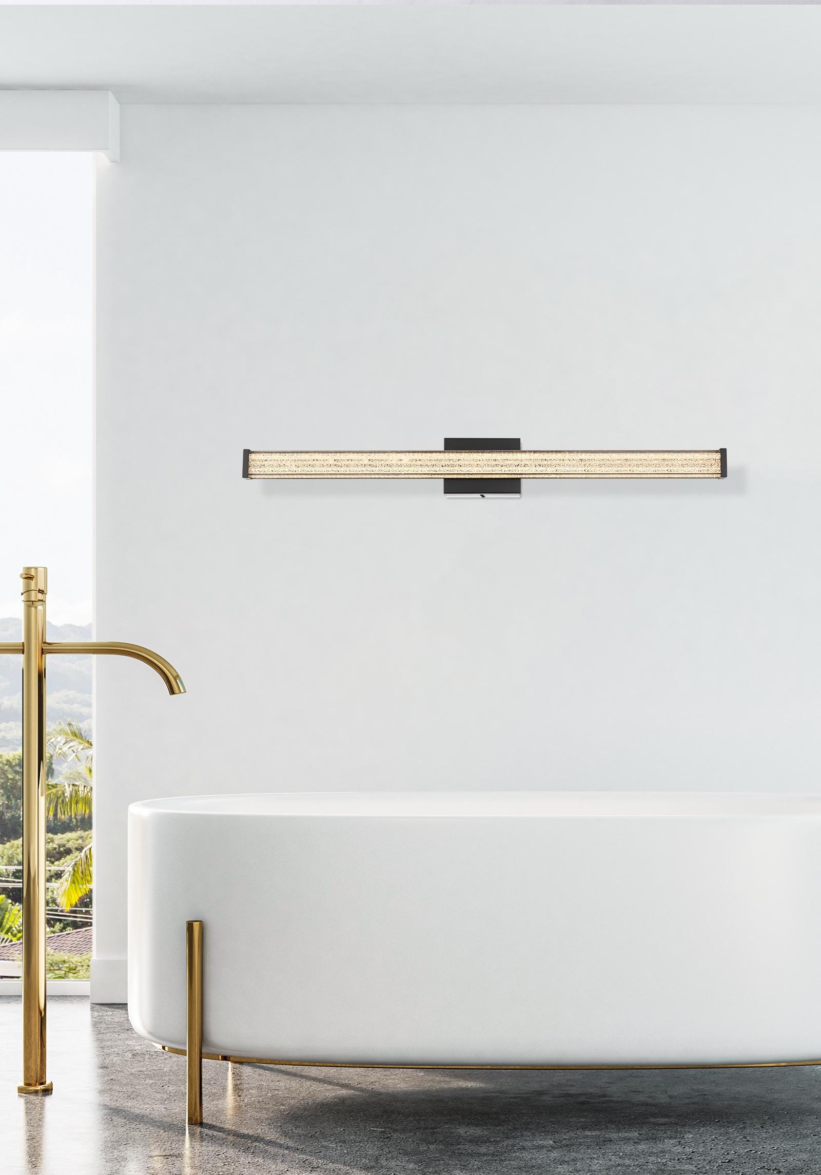 Experience the perfect fusion of form and function with our versatile LED linear wall sconce. The unique crackled acrylic diffuser transforms light into an artistic display, while the tri-color temperature settings provide complete control over your environment's ambiance. Available in four lengths and three distinguished finishes, this fixture adapts to any design vision while delivering efficient, beautiful illumination. Whether mounted horizontally above a vanity or vertically flanking a mirror, this hardwired fixture combines sophisticated style with practical functionality, making it an ideal choice for discerning designers and homeowners alike.