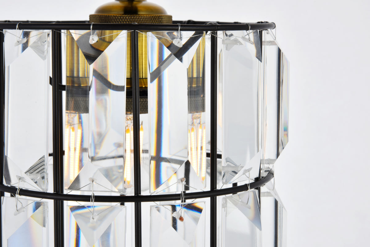 The Blair collection brings magnificent contemporary elegance to your living room, dining room, bedroom, or foyer. This pendent lamp is set in a cylindrical, Iron frame with an oil-rubbed bronze finish. The open, cage-like design forms three rows of rectangular spaces adorned with large, clear royal-cut baguette Crystals that gracefully refract light while drawing the eye to their organic beauty.