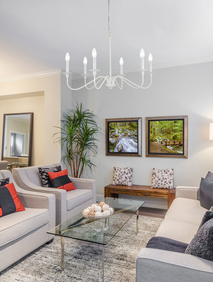 Illuminate your home with the enchanting brilliance of our Indoor Iron 6 Arm Chandelier. This exquisite piece is not just a source of light; it's a statement of elegance and style. The chandelier's dimmable feature allows you to create the perfect ambiance for any occasion, whether it's a romantic dinner or a lively get-together. With a 60-inch matching finish chain included, installation is a breeze, adding convenience to its list of selling points. Versatility is at the heart of this chandelier, as it seamlessly complements various rooms, from grand dining areas to cozy living spaces and captivating foyers. Designed for E12 bulbs, this chandelier accommodates six of them, providing ample illumination throughout the room. Please note that bulbs are not included, allowing you to personalize the lighting experience to your preference. Elevate your interior décor and bask in the captivating radiance of our chandelier that comes in various sizes and finishes.