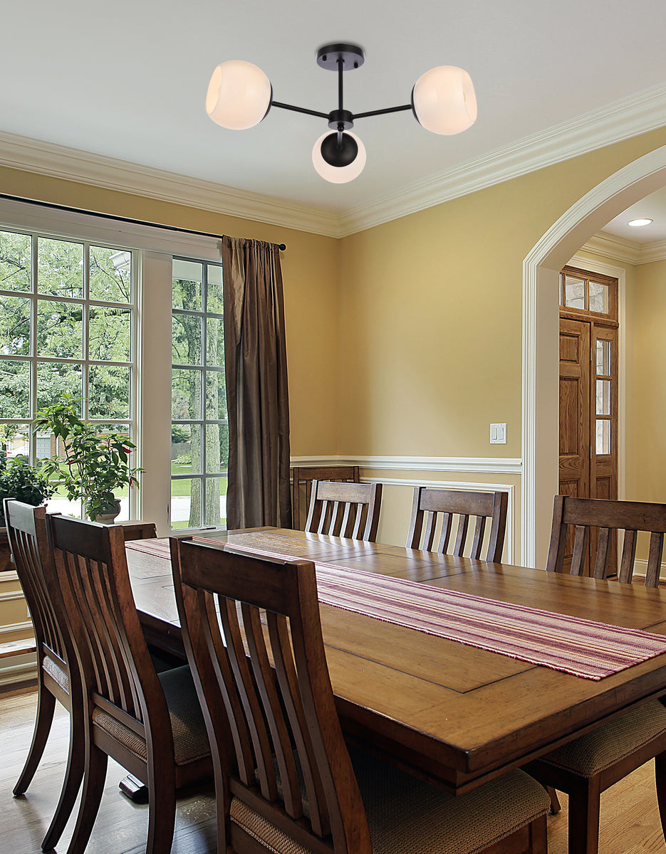 The Briggs collection pendant illuminates in all directions, creating a wonderful display of artistic style and brilliance. If your home was a modern art exhibit, then you have curated the best possible piece of art. With six lights pointing in different directions, and the painted finish gleaming in modern beauty, you won't have to worry about being "up to date" because you already are (light bulbs not included). This modern light fixture is adorned with spherical glass globes. The hardware finish brings an element of sophistication that can accentuate all styles of interior design.