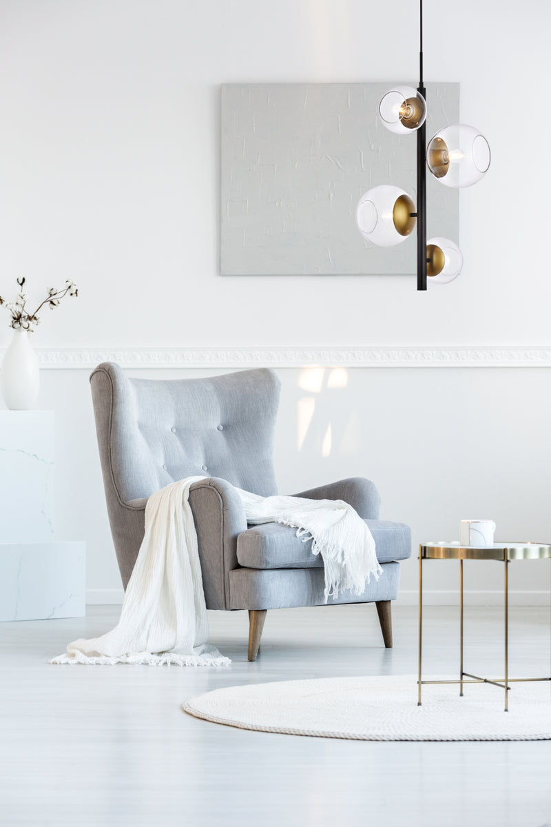 This 4-light modern linear chandelier adds a major mid-century modern style without taking up any valuable floor space. It's made from metal and features a cylindrical shaped body that supports four glass globe shades that diffuses the light from a 40W bulb (not included). This light arrives with an adjustable fabric cord and is dimmable.