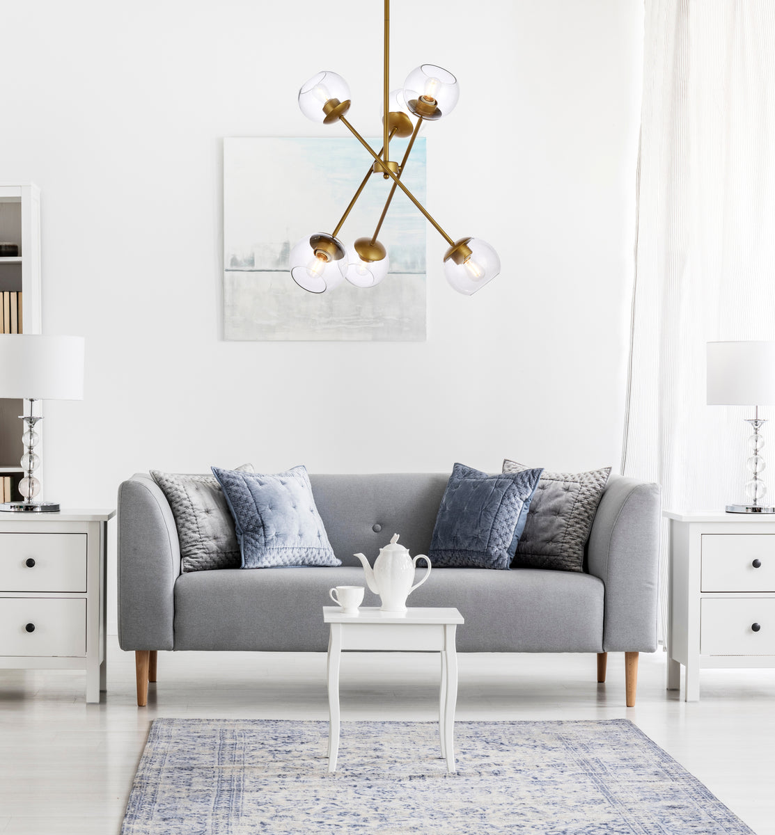 The multi-directional lines on this 6-light sputnik chandelier bring an architectural look over the dining room table or kitchen island. It has a circular canopy and an adjustable downrod to suit any space. The sleek, sputnik-inspired lines zigzagging in all directions freshen up any modern home. At the end of each rod, there is one glass shade with one candelabra-style bulb up to 60W (not included) that aims ambient light wherever you hang it. Best of all, this hardwired chandelier is compatible with a dimmer switch, allowing you to change up the lighting throughout the day.