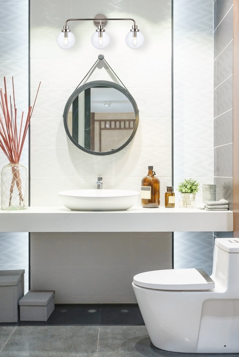 Hanson 3 lights bath sconce in polished nickel with clear shade