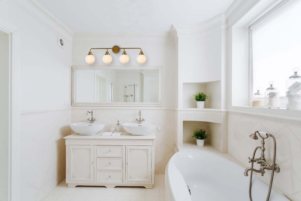 Hanson 4 lights bath sconce in brass with frosted shade