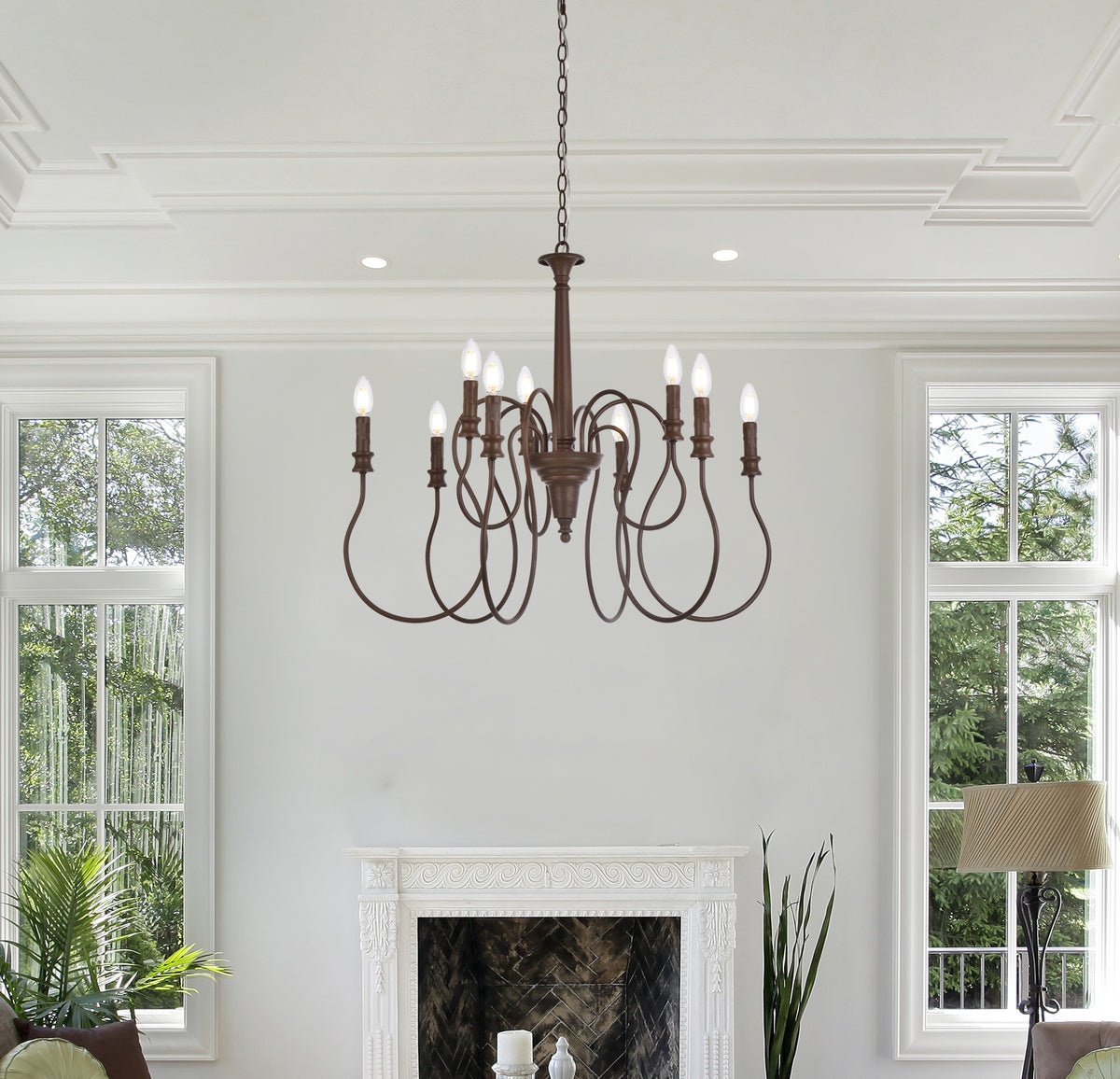 Flynx 9 lights pendant in weathered oak is the perfect fixture for over a kitchen island, over a dining table, or use in any room to make a big statement. This pendant elevates the look of any space.