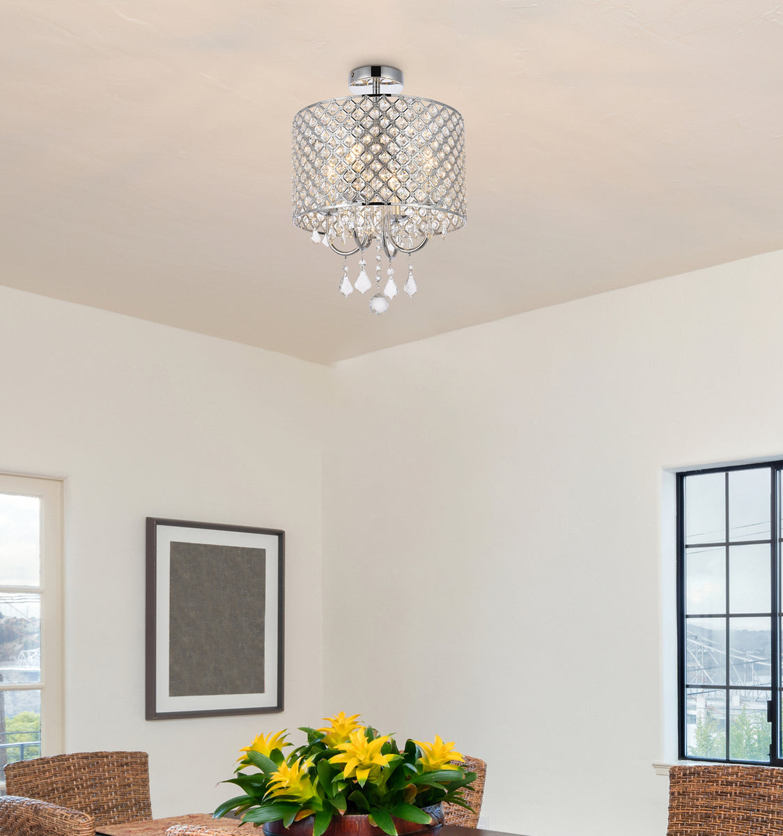 This 4 light semi-flush mount is sure to look great in your space. The circular canopy, small downrod, and sockets are made from metal of your choice of finish. It features a metal lattice shade that encases four sockets. This fixture takes four 40W bulbs, (not included) that wash your space in a bright glow. It's compatible with a dimmer switch, so you'll always have the right amount of light no matter the time of day.