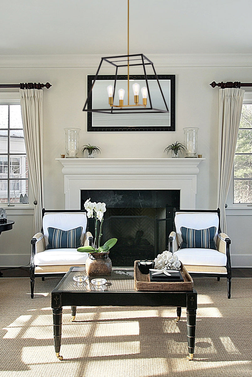 Sure to shine, this eye-catching lantern is crafted from iron, showcasing an open lantern silhouette that adds a dash of architectural appeal to the entryway, living room, or hall. Inside, four medium sockets hold 40 W maximum bulbs (not included). This hardwired design is also compatible with a dimmer switch, so you can set the mood as you please. Minimum hanging height of 21.4 inches and maximum hanging height of 61.4 inches. The overall height is adjustable, comes with one set of 6 inch rod, two sets of 12 inch rod, and one set of 16 inch rod.