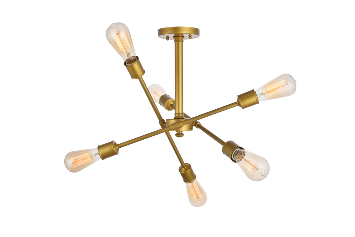 Modern sophistication with a jaunty presentation. Axel flush-mount ceiling lamps feature three adjustable crossing arms mounted on a circular base to direct light in any direction. A total of six light sources (bulbs not included) promises utility anywhere – kitchen, bathroom, or over the dining table. The absence of shades says industrial; the design says penthouse. The smooth steel hardware is finished in soft brass, adding a luxurious flair. Stylish and cutting-edge without being too eccentric.
