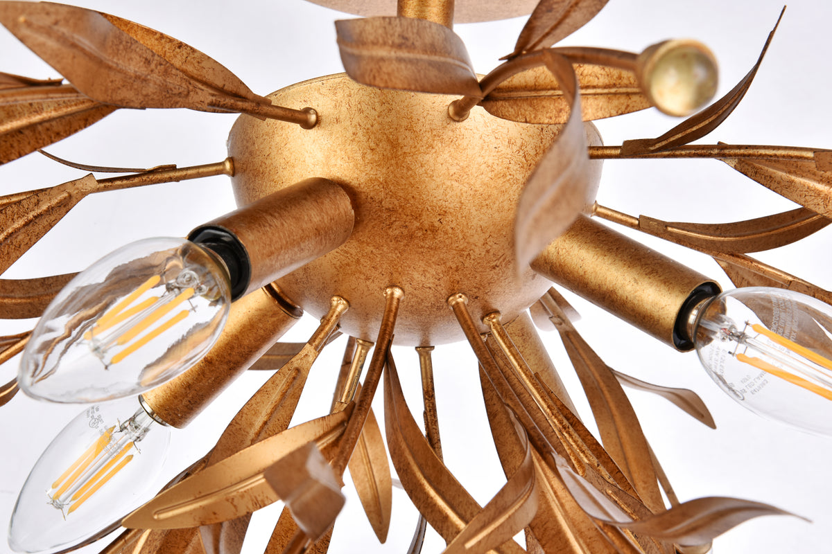 This 4 light semi-flush mount is sure to add a nice focal point in your space. The circular canopy, small downrod, and sockets are made from metal of your choice of finish. It features several leaf branches tipped with clear crystal bead. This fixture takes four 40W bulbs, (not included) that wash your space in a bright glow. It's compatible with a dimmer switch, so you'll always have the right amount of light no matter the time of day.