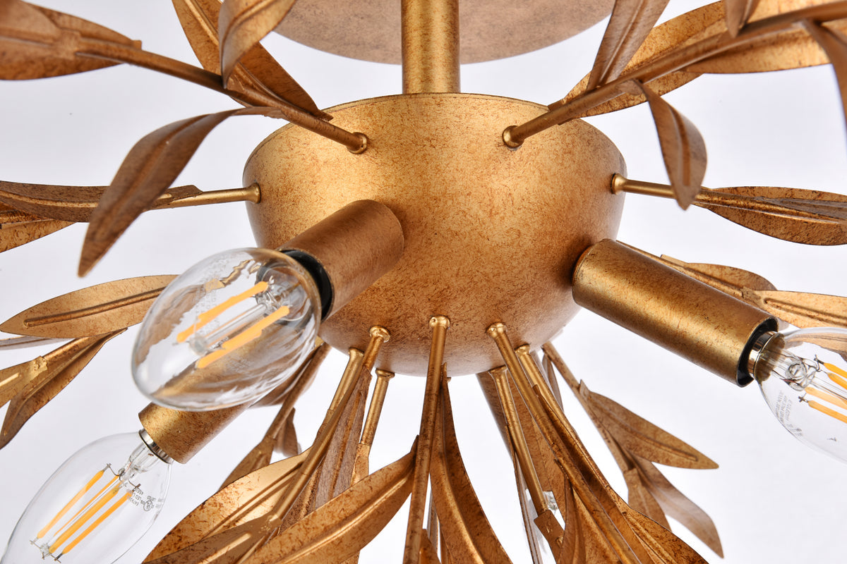 This 4 light semi-flush mount is sure to add a nice focal point in your space. The circular canopy, small downrod, and sockets are made from metal of your choice of finish. It features several leaf branches tipped with clear crystal bead. This fixture takes four 40W bulbs, (not included) that wash your space in a bright glow. It's compatible with a dimmer switch, so you'll always have the right amount of light no matter the time of day.