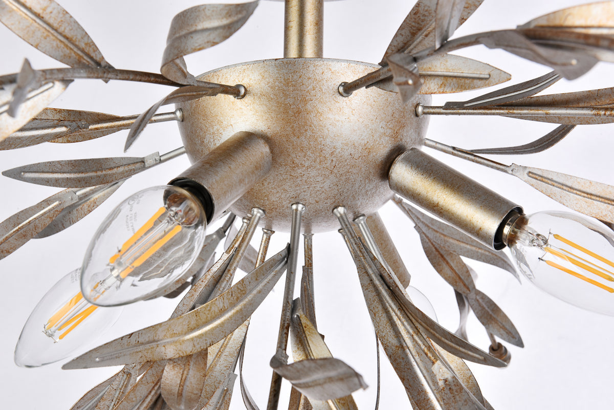 This 4 light semi-flush mount is sure to add a nice focal point in your space. The circular canopy, small downrod, and sockets are made from metal of your choice of finish. It features several leaf branches tipped with clear crystal bead. This fixture takes four 40W bulbs, (not included) that wash your space in a bright glow. It's compatible with a dimmer switch, so you'll always have the right amount of light no matter the time of day.