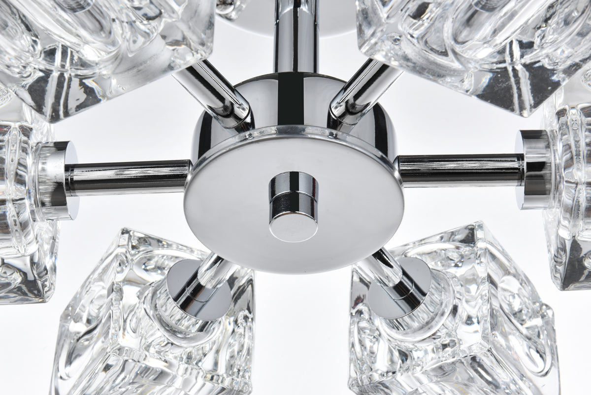 Effortlessly elegant, our Lyra 14-inch flush mount redefines your space, projecting six lights each adorned with distinctive dimpled square glass for a dynamic touch. Crafted with durability in mind, the iron base adds a hint of industrial elegance. Its flush design hugs the ceiling, combining style with space-saving practicality. Enjoy easy assembly and a 360-degree beam spread, casting warm and inviting light throughout your space. Illuminate with Lyra's timeless radiance.