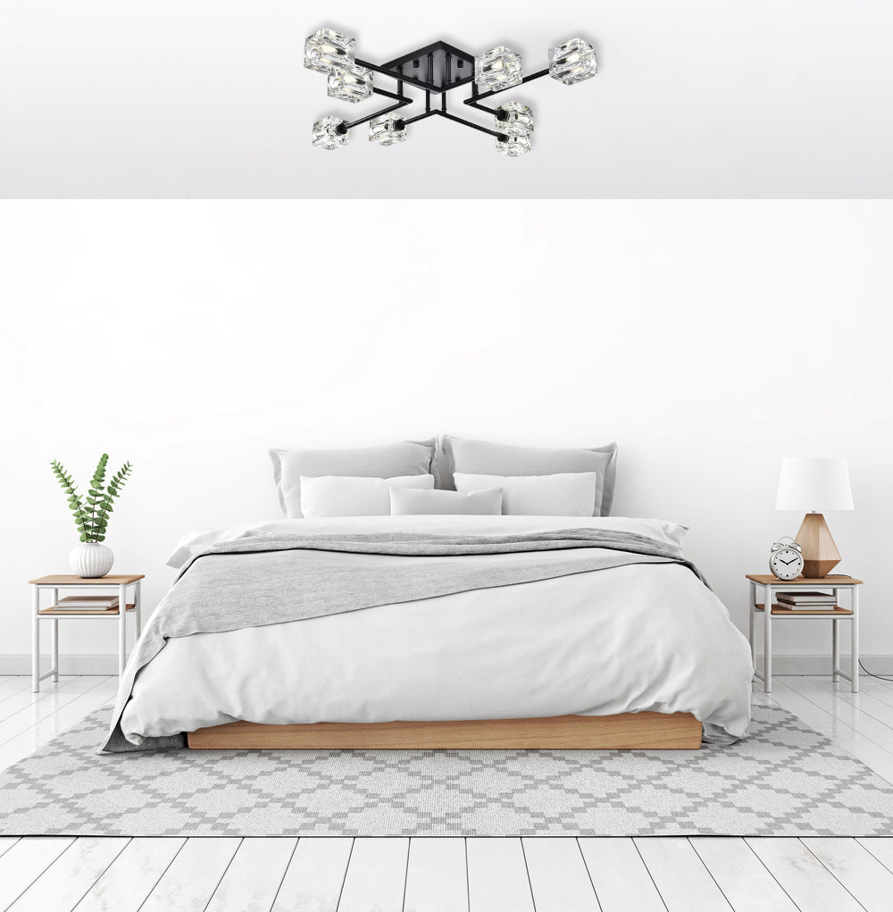 Effortlessly elegant, our Lyra 32-inch flush mount redefines your space, projecting eight lights each adorned with distinctive dimpled square glass for a dynamic touch. Crafted with durability in mind, the iron base adds a hint of industrial elegance. Its flush design hugs the ceiling, combining style with space-saving practicality. Enjoy easy assembly and a 360-degree beam spread, casting warm and inviting light throughout your space. Illuminate with Lyra's timeless radiance.