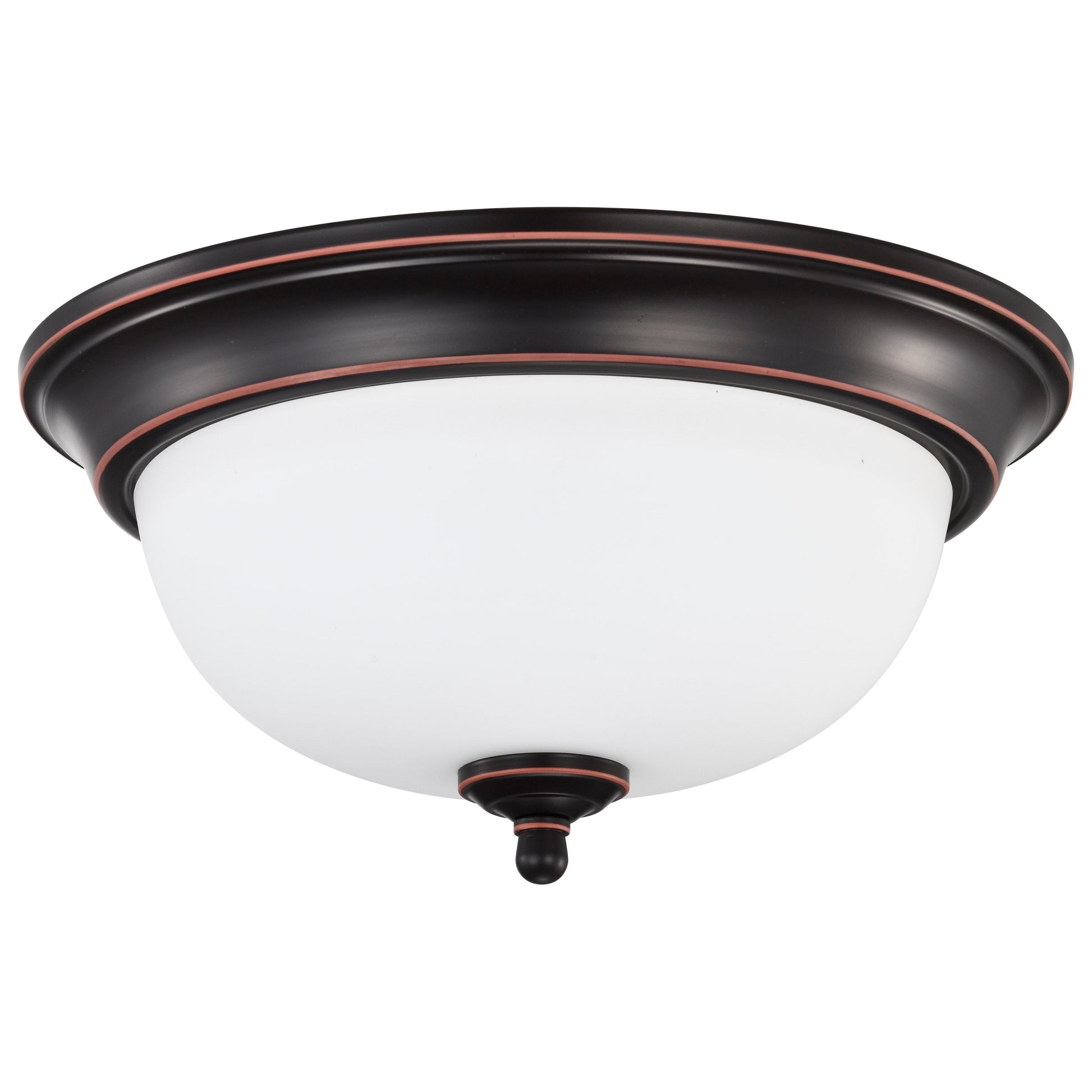 Center Lock 13 Inch LED Flush Mount; 19 Watt; 3000K; Mahogany Bronze Finish; Frosted Glass