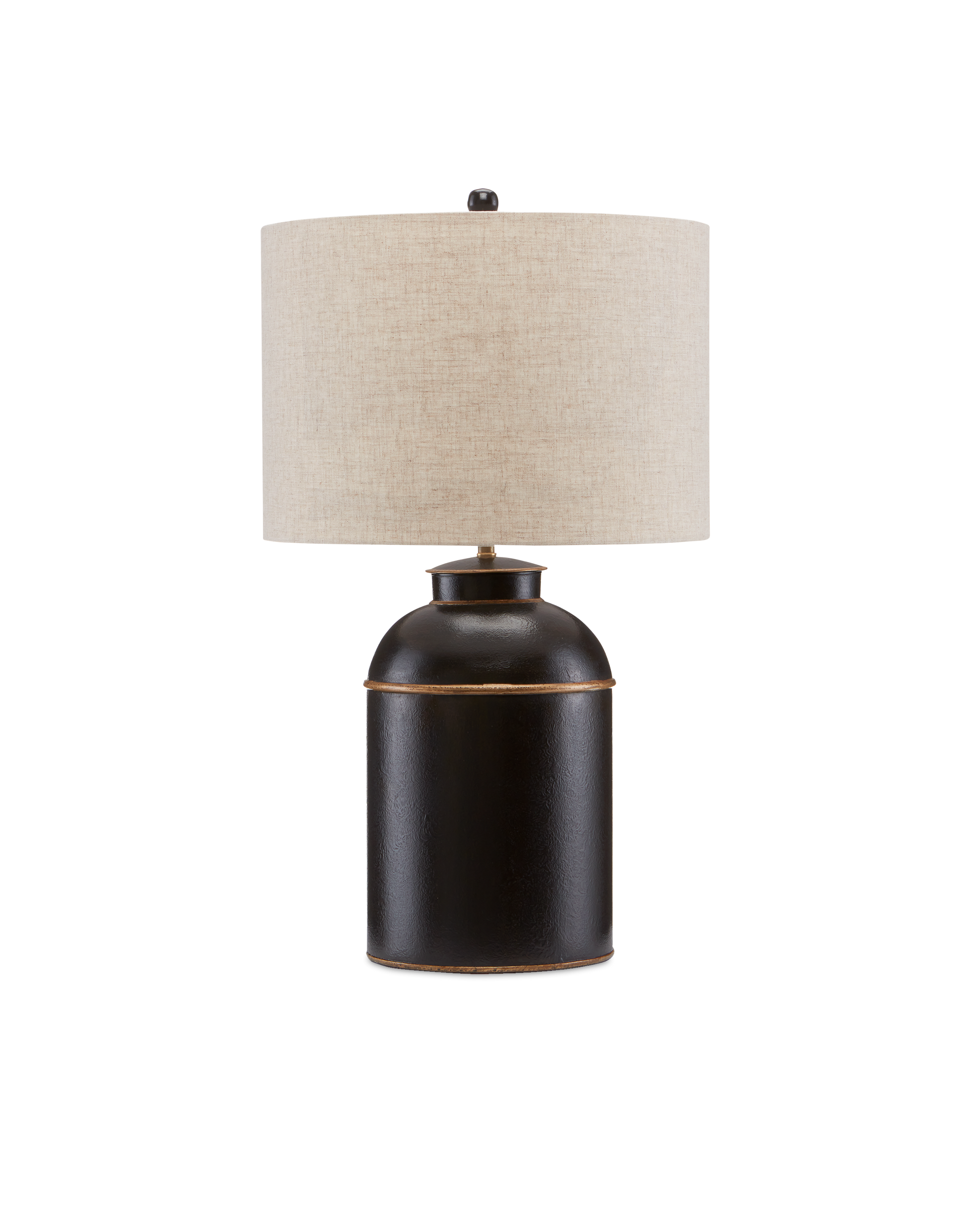Joining the accessories in the London family of products, the London Black Table Lamp is made of wrought iron in a black finish with gold accents. This design pays homage to the canisters used by the Indian companies to export tea leaves to England since the 14th century. It is lacquered with a very refined crackled finish, as is the classic ivory version of this table lamp.