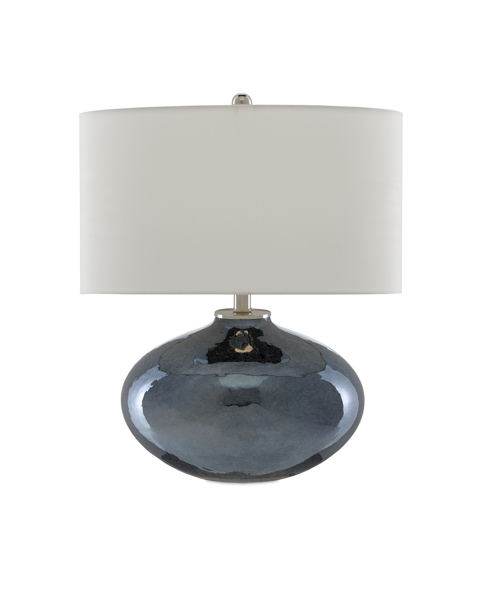 In the tried-and-true tradition of radiant mercury glass, our Lucent Blue Table Lamp shines like few materials can. The rotund body made of luminous blue plated glass effervesces when light wafts from under the off-white shantung shade, held in place by hardware and a round finial in a polished nickel finish. This is one of our products that illustrates the skill of our glassblowers and finishers.