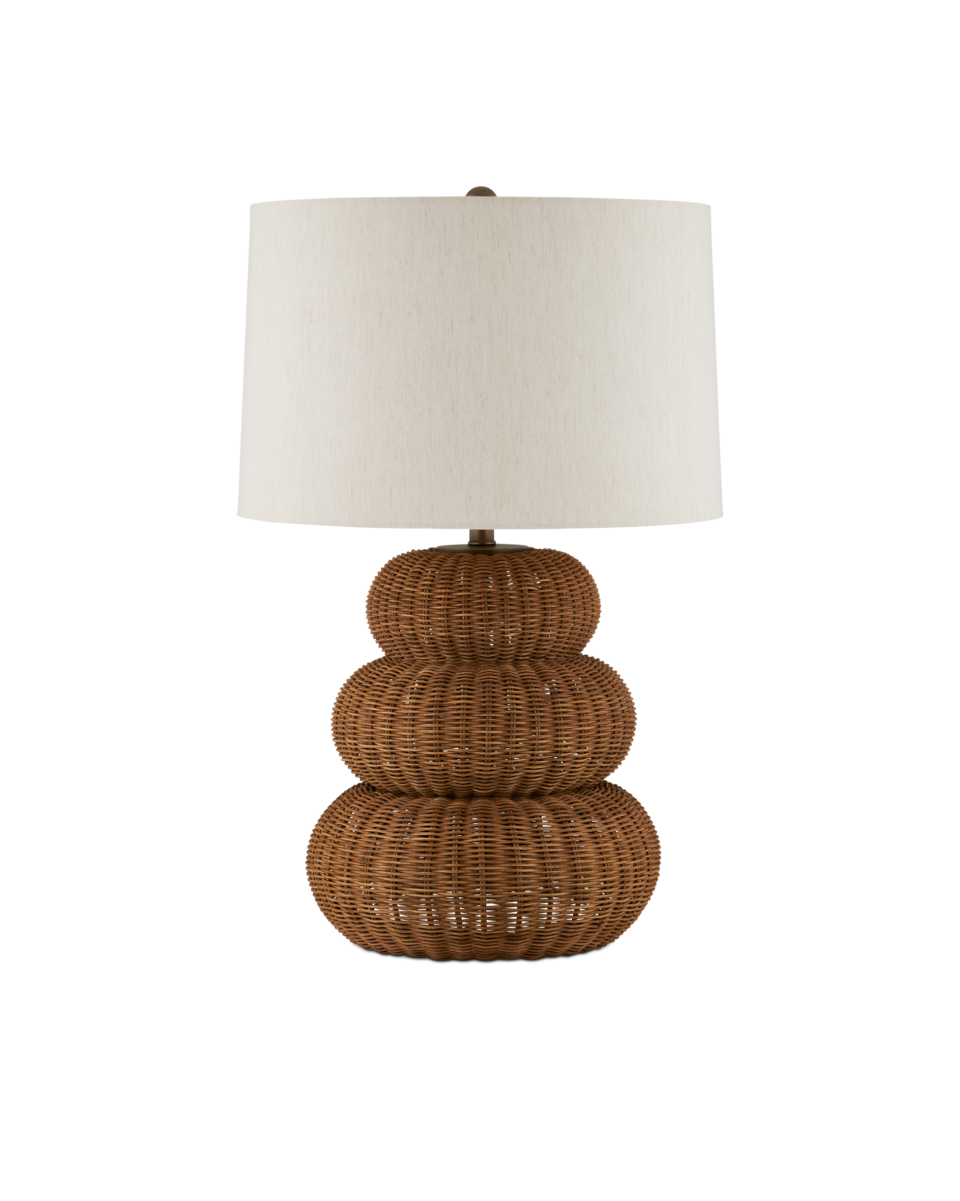 Nothing says texture in a space better than woven natural materials. The Mabrouka Table Lamp brings it in spades. Made of rattan, the triple-gourd shape of the lamp's body and the dark brown finish that adds warmth to the natural material enliven the personality of the brown lamp. The hardware and finial in an antique brass finish read as perfectly in-sync with the color of the wicker weave.