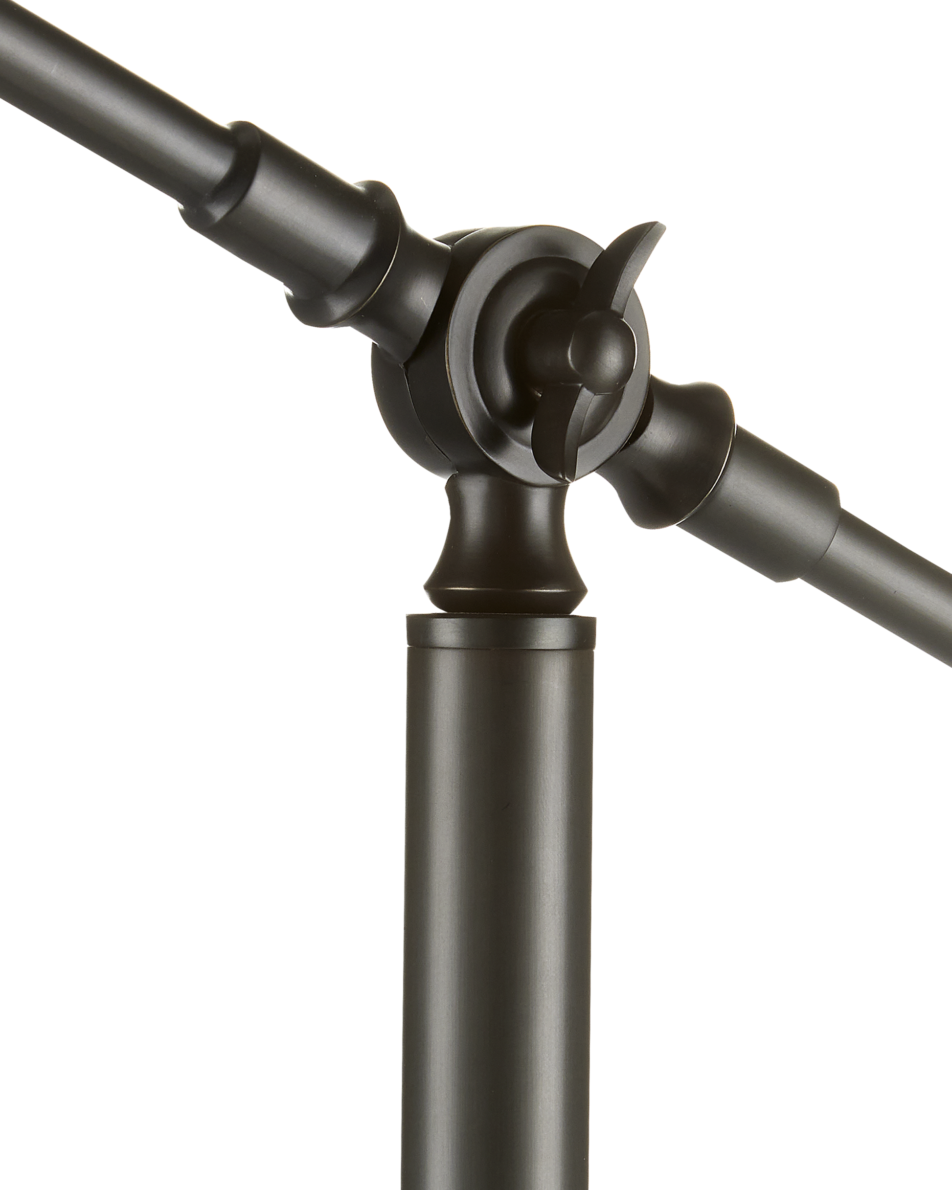 A nod to Americana and the utilitarian leanings of our country's colonial era, the Maxstoke Bronze Floor Lamp has an adjustable arm that is so appealing it would be just as brilliant in an office setting as in a living room. The design of this dark version of the popular arc lamp, which is made of metal, will complement mid-century modern and modern farmhouse style interiors. The beige shantung shade swivels and adjusts to make this black floor lamp a book lover's go-to illumination.