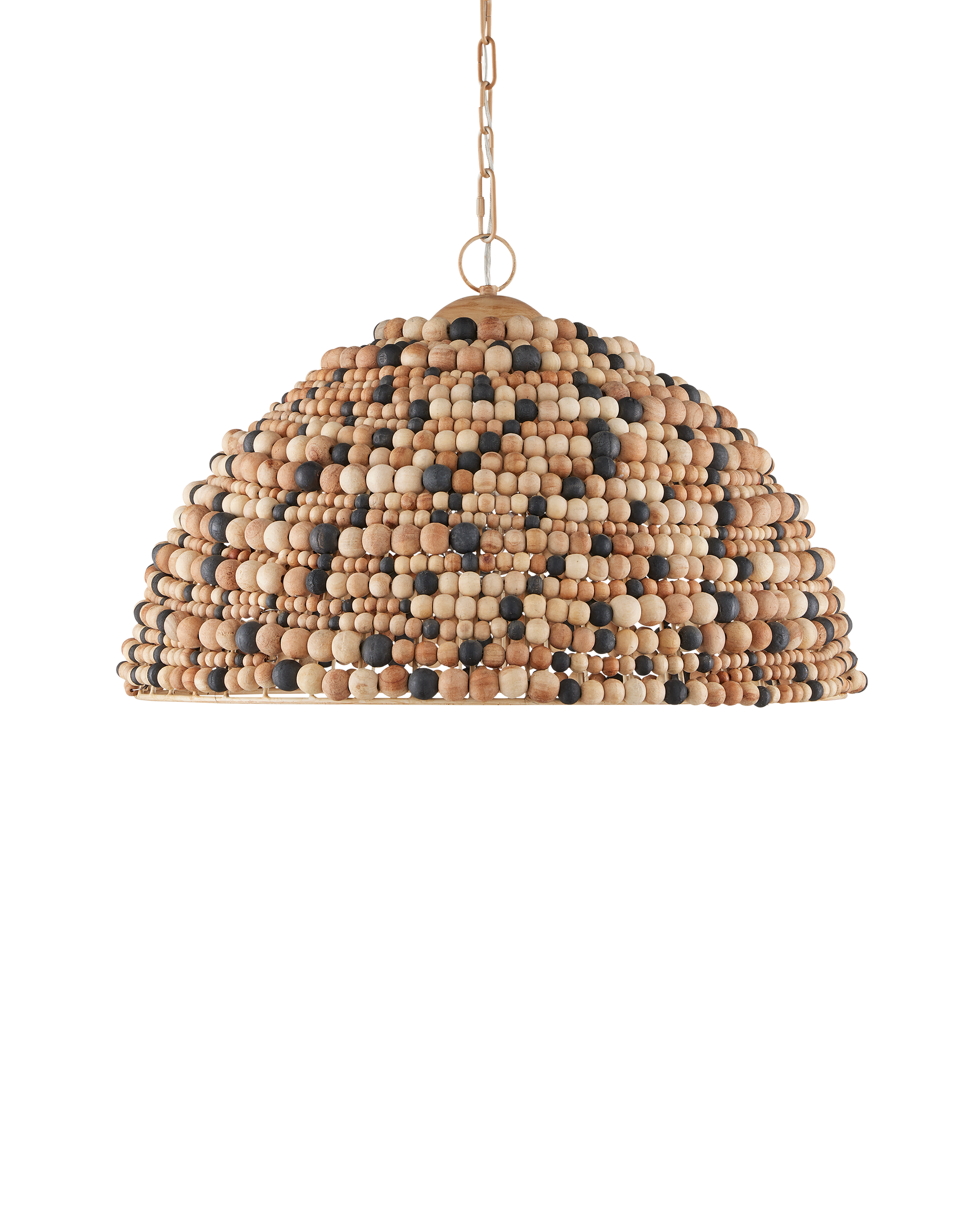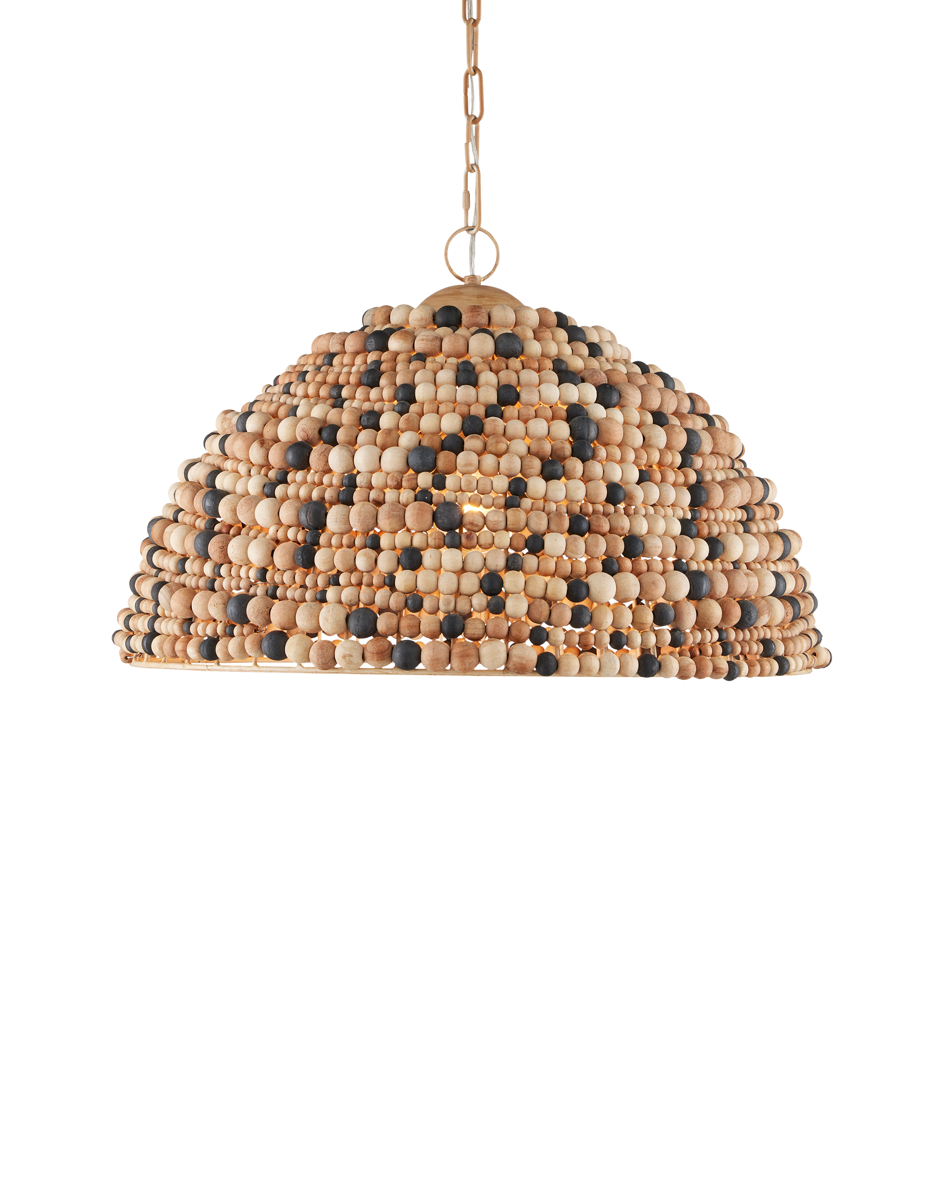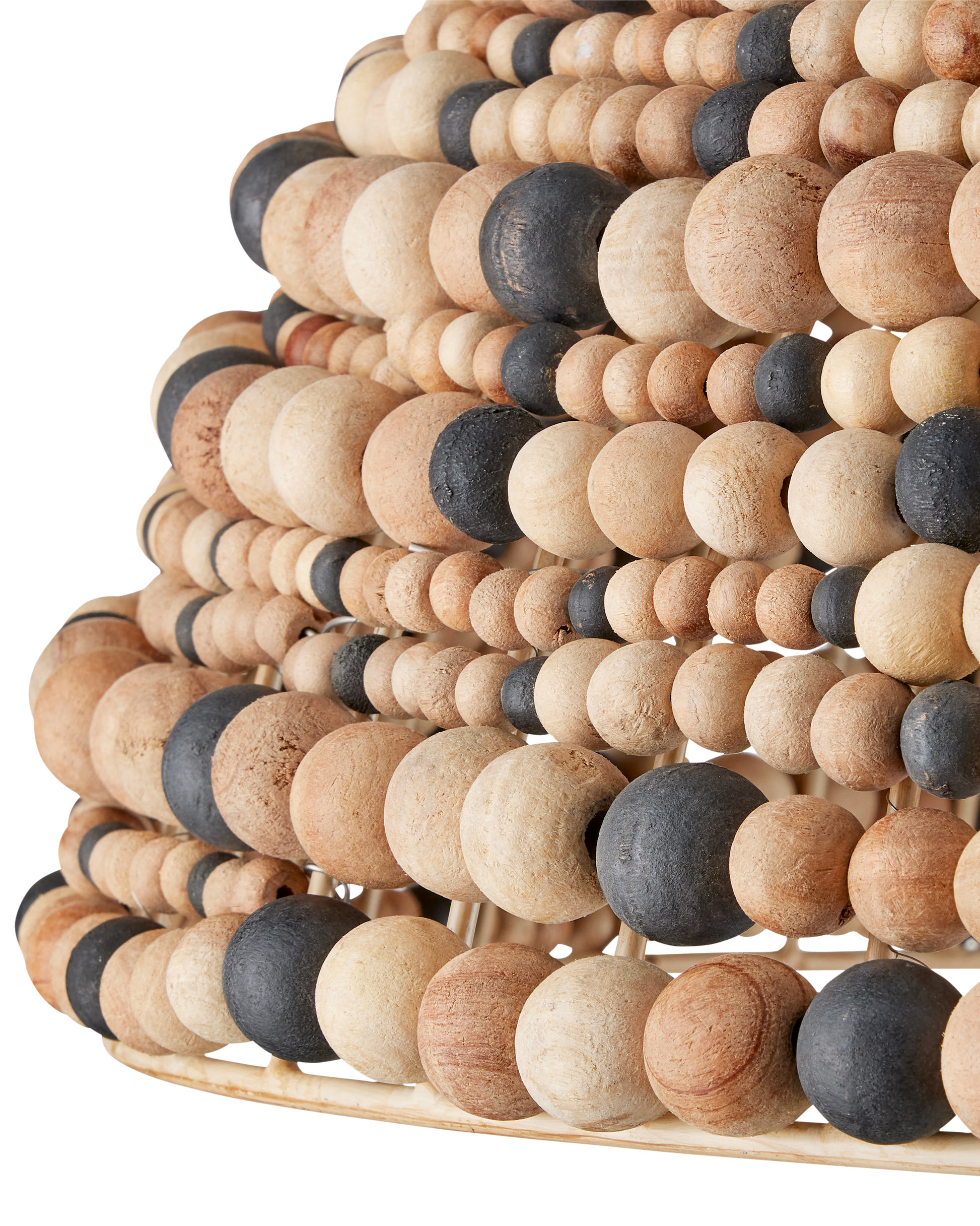 The Medley Pendant has an pebbly feel to its surface thanks to the wood beads that not only differ in size, but also in color -- natural, tan, and black. Clarence Mallari, who designed this dome-shaped pendant, notes how the wires are welded together to accommodate the different bead sizes and how the fixture looks beautiful when viewed from underneath. Adjustable from 23" to 90" with use of included chain/rod kit/cable. If your space calls for a longer drop, additional chain/rods/cable is available for purchase.