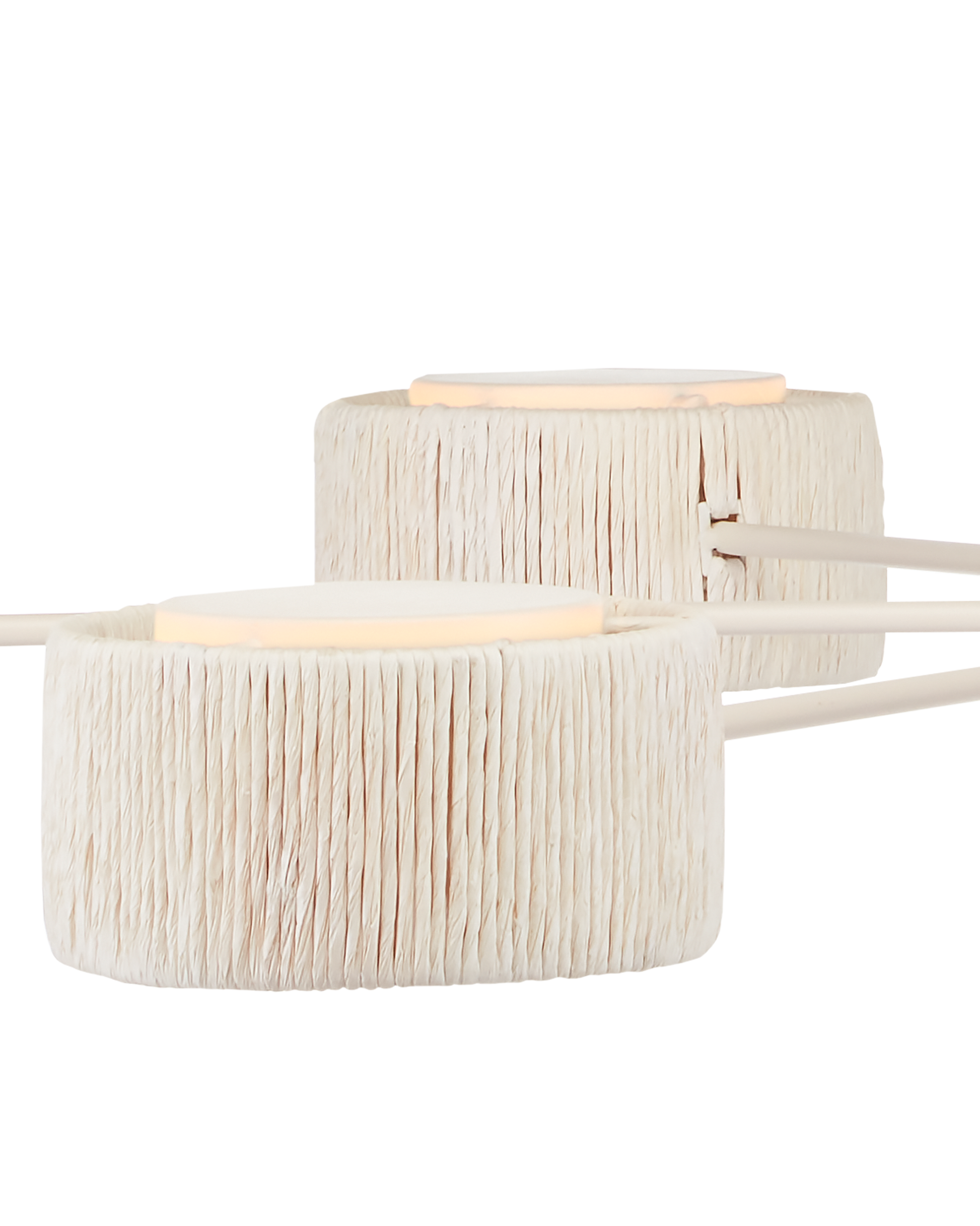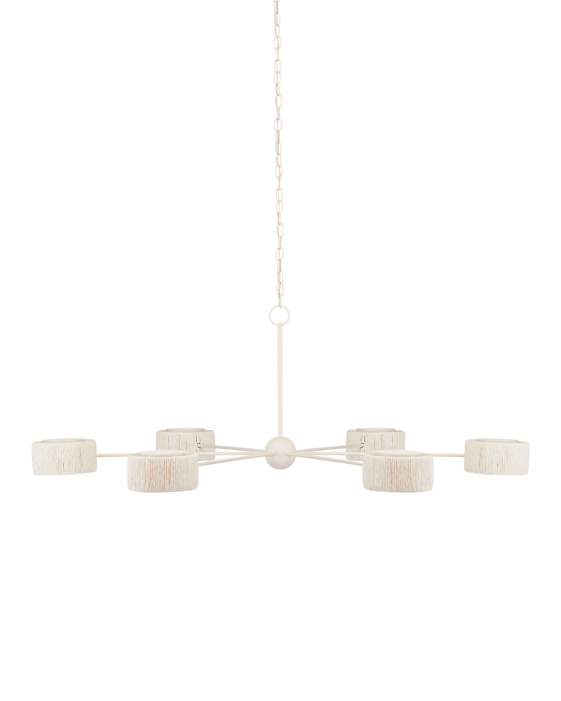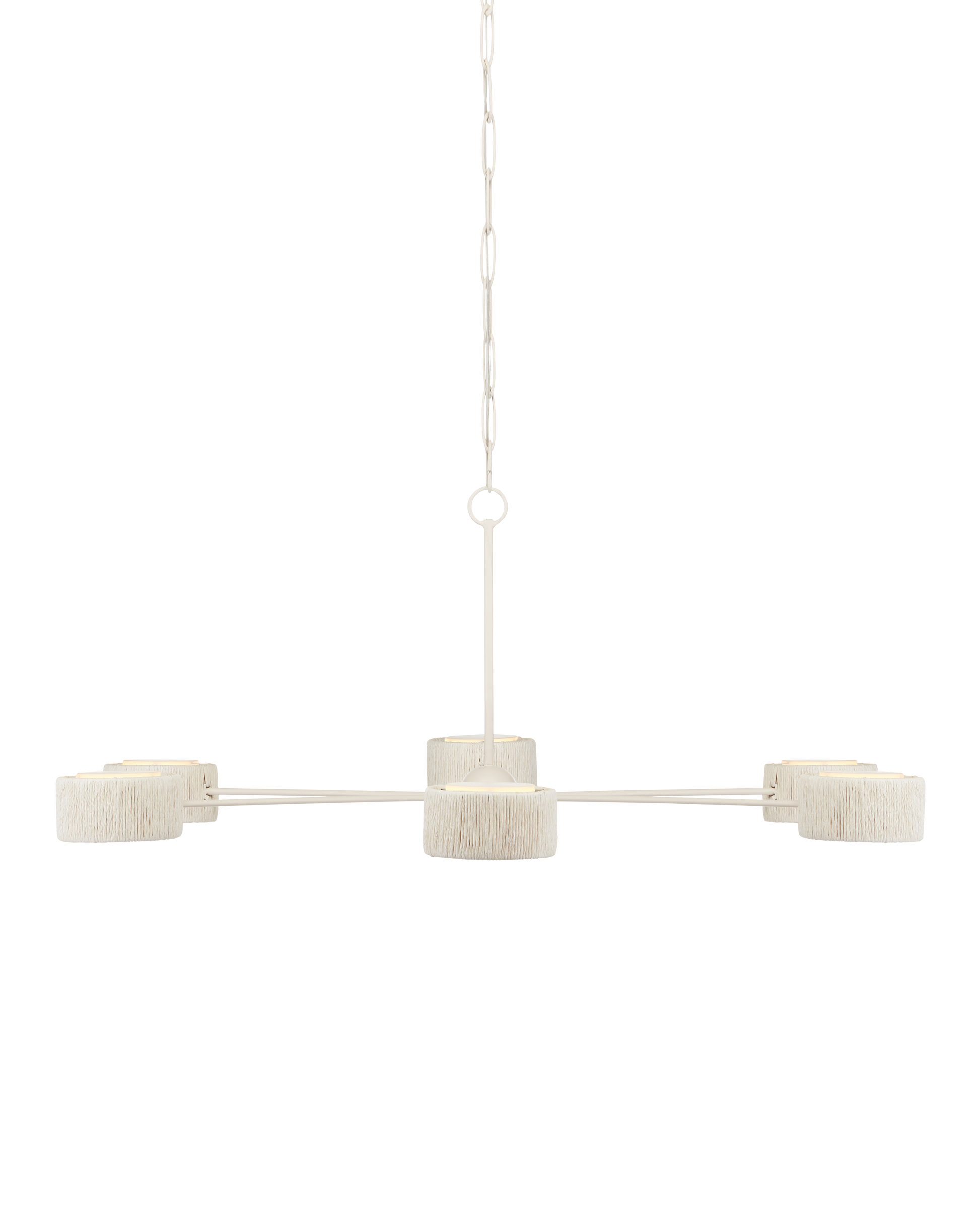 With shades made from recycled paper that has been twisted like braided hair, the Monreale Chandelier, designed by Clarence Mallari, has a frame made of round tubing that telescopes out from a central cog. The paper is painted white and the wrought iron frame has a vanilla finish that contributes to the lightness of this ivory chandelier. The shades are fitted with acrylic diffusers on the bottoms and there are no transformers because the fixture has integrated LED technology. Adjustable from 24" to 93" with use of included chain/rod kit/cable. If your space calls for a longer drop, additional chain/rods/cable is available for purchase.