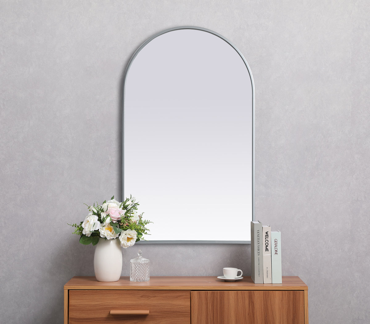 Metal Frame Arch Mirror 22x36 Inch in Silver