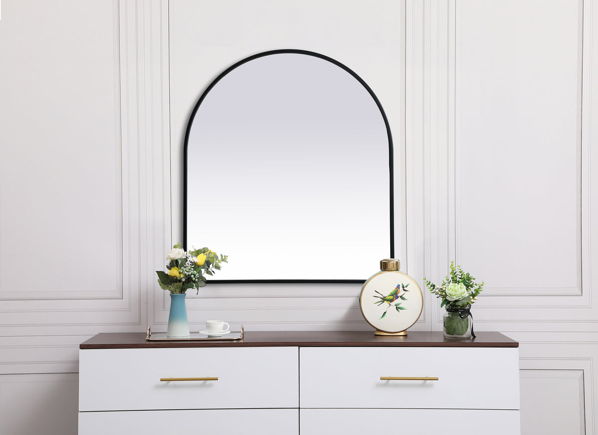 Metal Frame Arch Mirror 27x30 Inch in Black