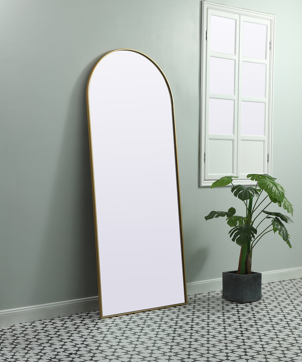 Metal Frame Arch Full Length Mirror 32x76 Inch in Brass