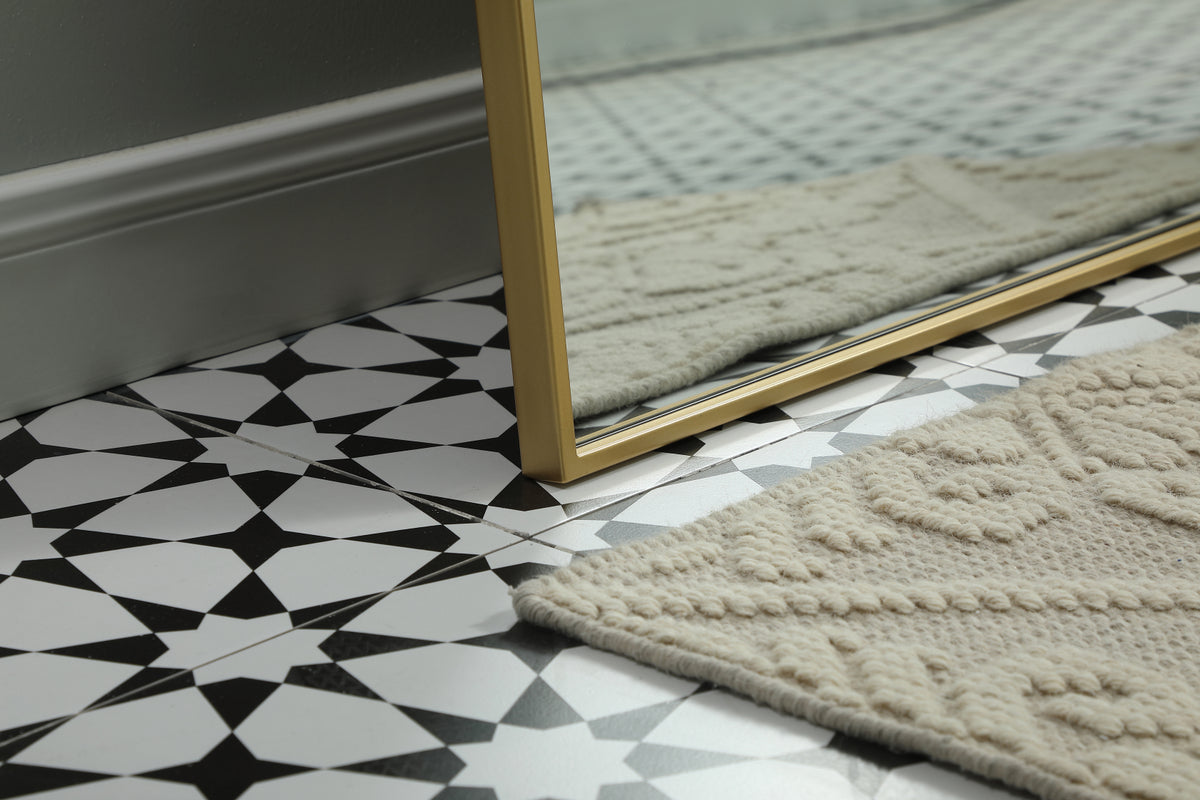 Elongated and modern, its curved profile looks great as a leaning mirror or a hanging mirror by a door. This ultra thin full-length mirror makes a practical addition to any room. Set in an iron frame, this sturdy mirror complements any room. Whether you want to create an illusion of extra space or use it as a functional accent, this mirror will make a big statement over your wall. Comes in three satin finishes in black, brass, or silver.