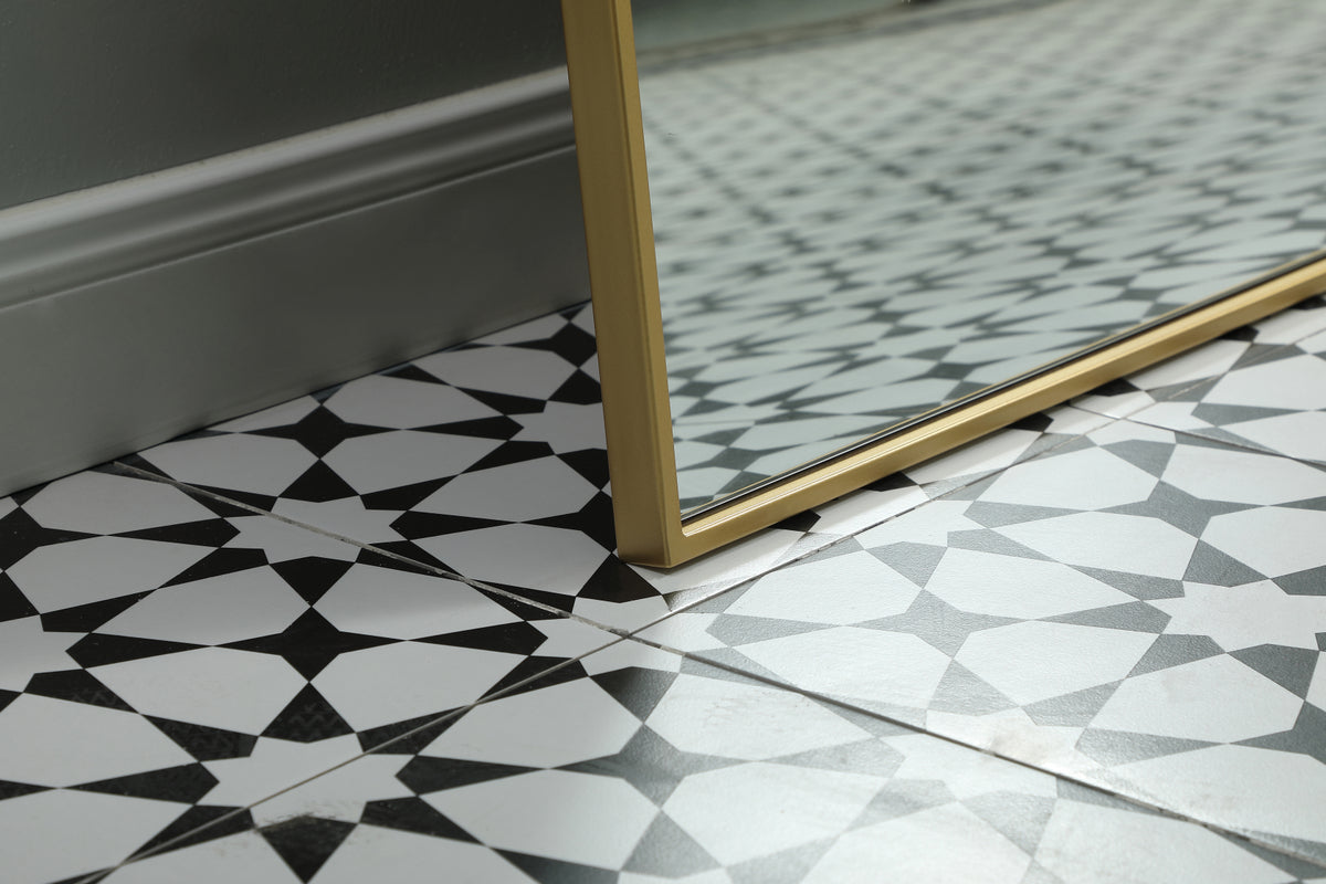 Elongated and modern, its curved profile looks great as a leaning mirror or a hanging mirror by a door. This ultra thin full-length mirror makes a practical addition to any room. Set in an iron frame, this sturdy mirror complements any room. Whether you want to create an illusion of extra space or use it as a functional accent, this mirror will make a big statement over your wall. Comes in three satin finishes in black, brass, or silver.