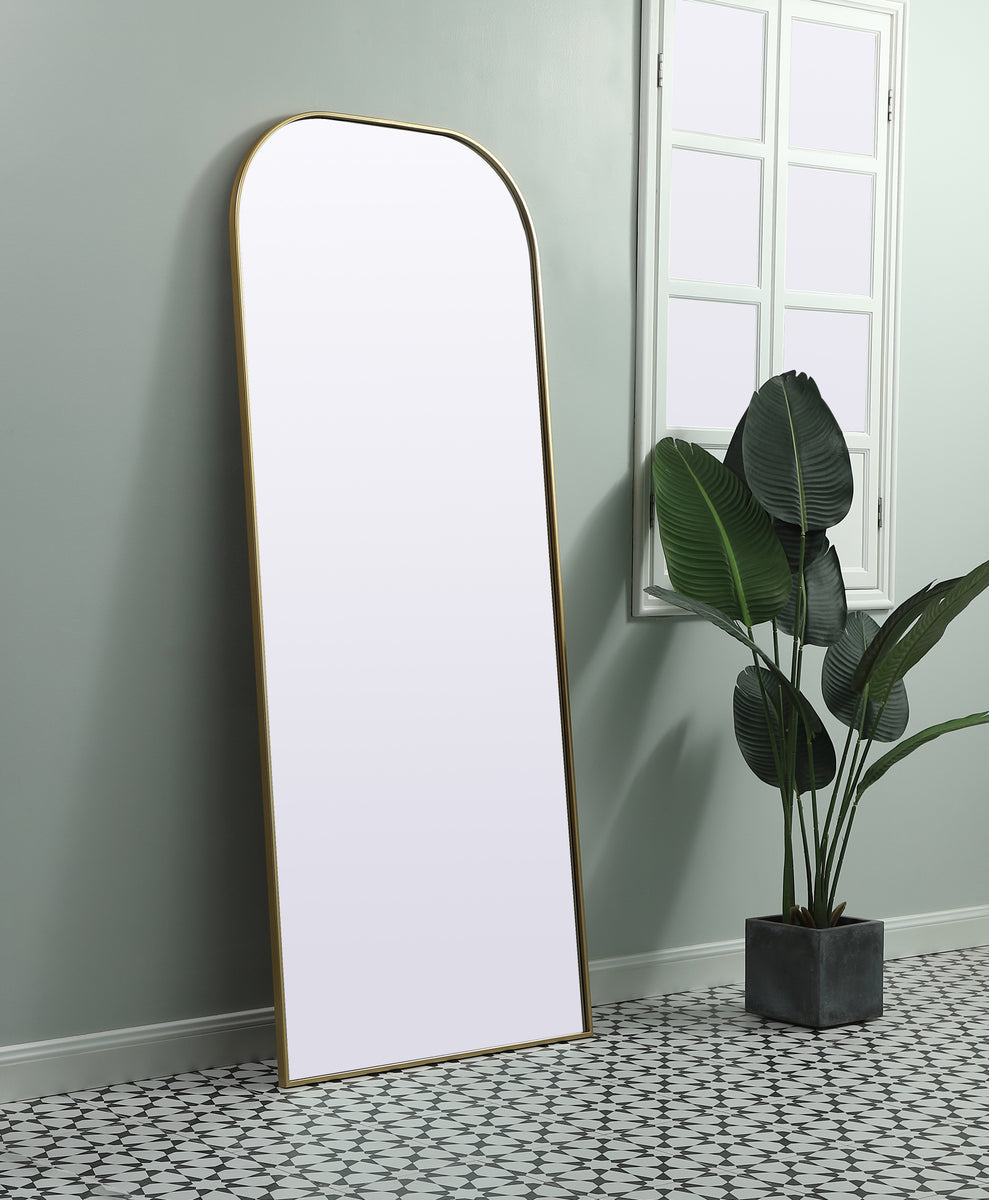 Metal Frame Arch Full Length Mirror 32x76 Inch in Brass