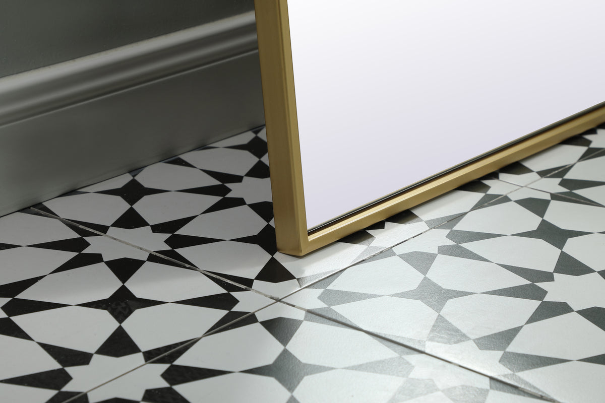 Elongated and modern, its curved profile looks great as a leaning mirror or a hanging mirror by a door. This ultra thin full-length mirror makes a practical addition to any room. Set in an iron frame, this sturdy mirror complements any room. Whether you want to create an illusion of extra space or use it as a functional accent, this mirror will make a big statement over your wall. Comes in three satin finishes in black, brass, or silver.