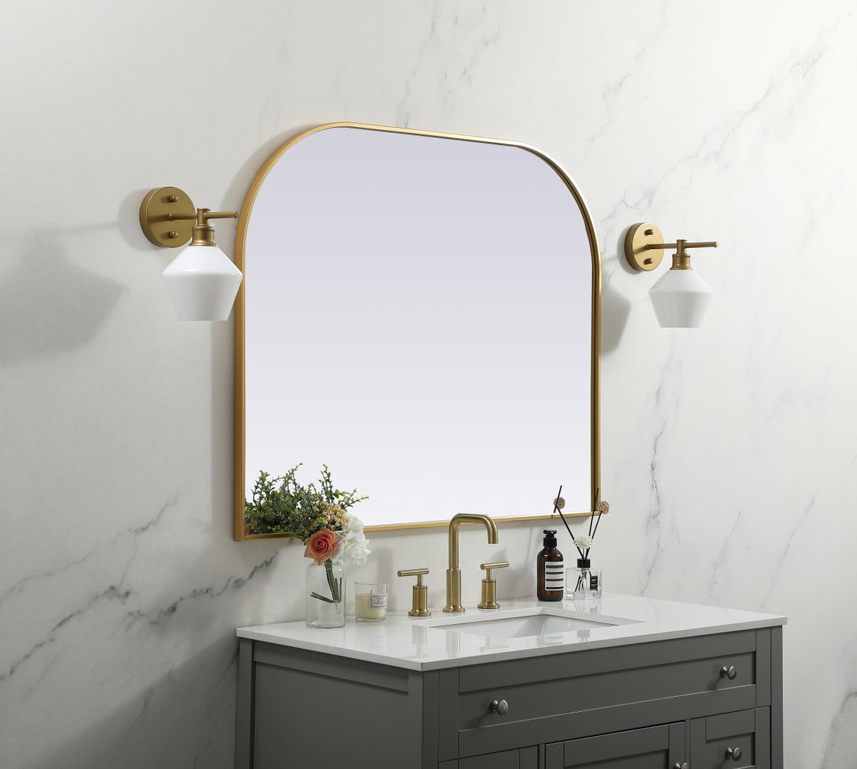 Metal Frame Arch Mirror 42x34 Inch in Brass