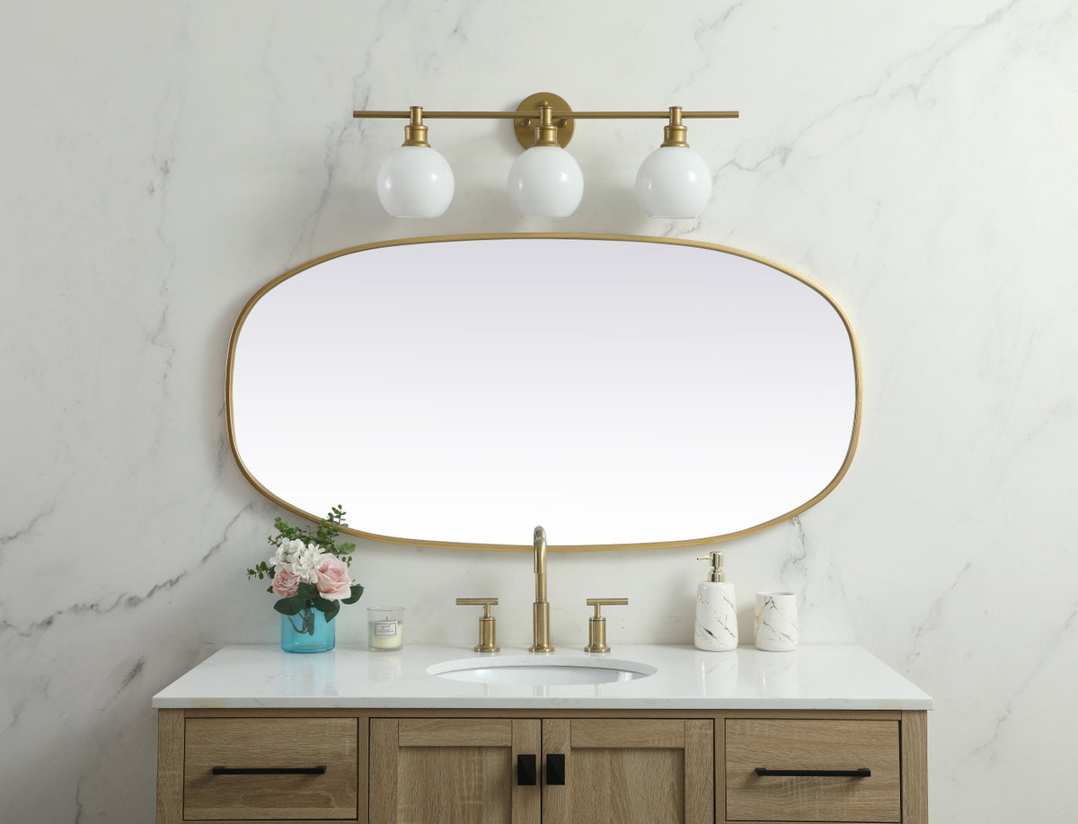 Metal Frame Oval Mirror 24x48 Inch in Brass
