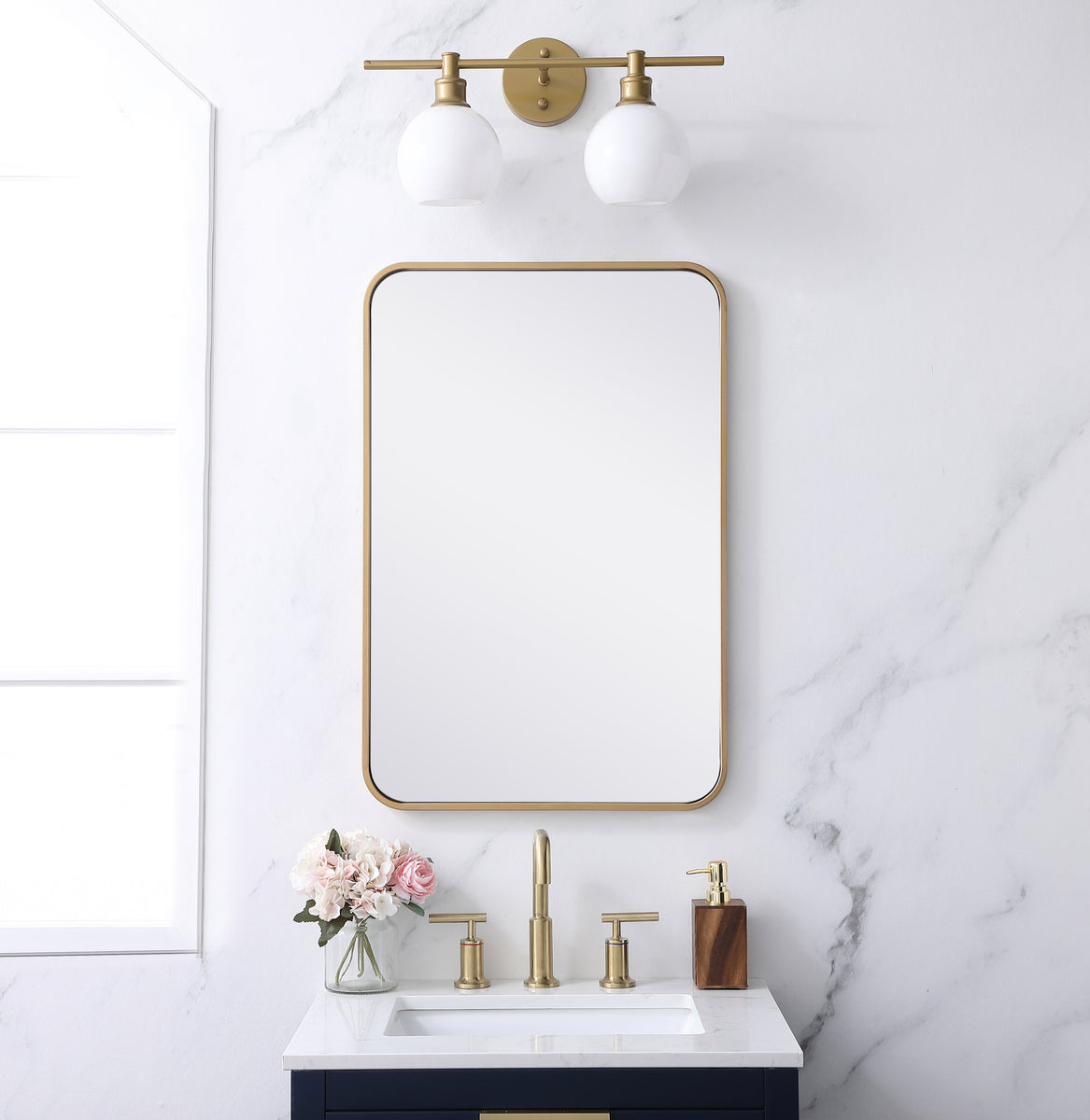 Soft corner metal rectangular mirror 20x30 inch in Brass