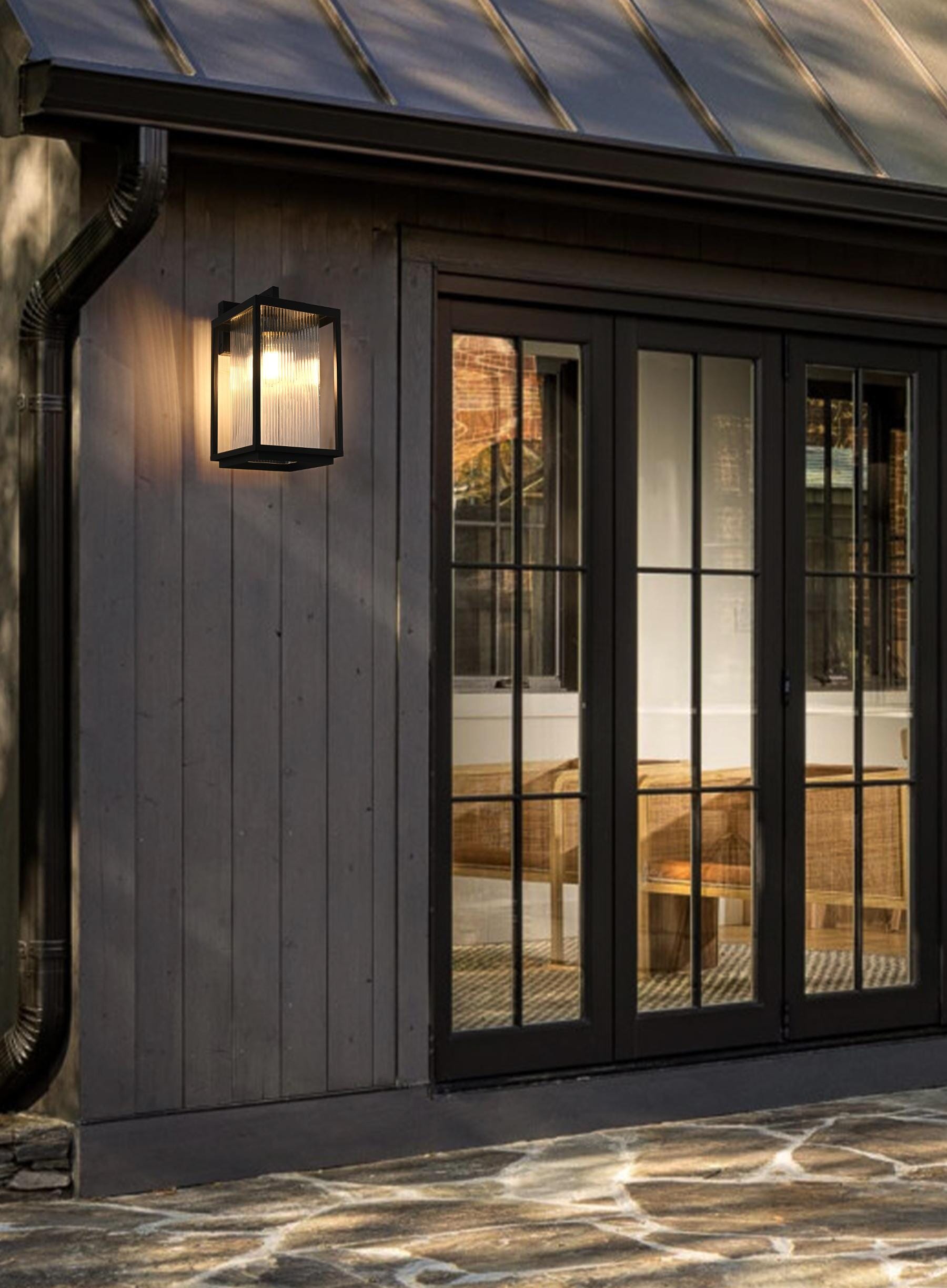Enhance the beauty of your home's exterior with this refined outdoor wall sconce, crafted from durable iron and glass. The fluted glass design offers an eye-catching texture that diffuses light for a warm, ambient glow. Built with a sturdy iron frame, this sconce blends classic craftsmanship with modern appeal, making it the perfect addition to your porch, patio, or entryway. The clean-lined silhouette and versatile black finish make it easy to complement any style, from contemporary to traditional.