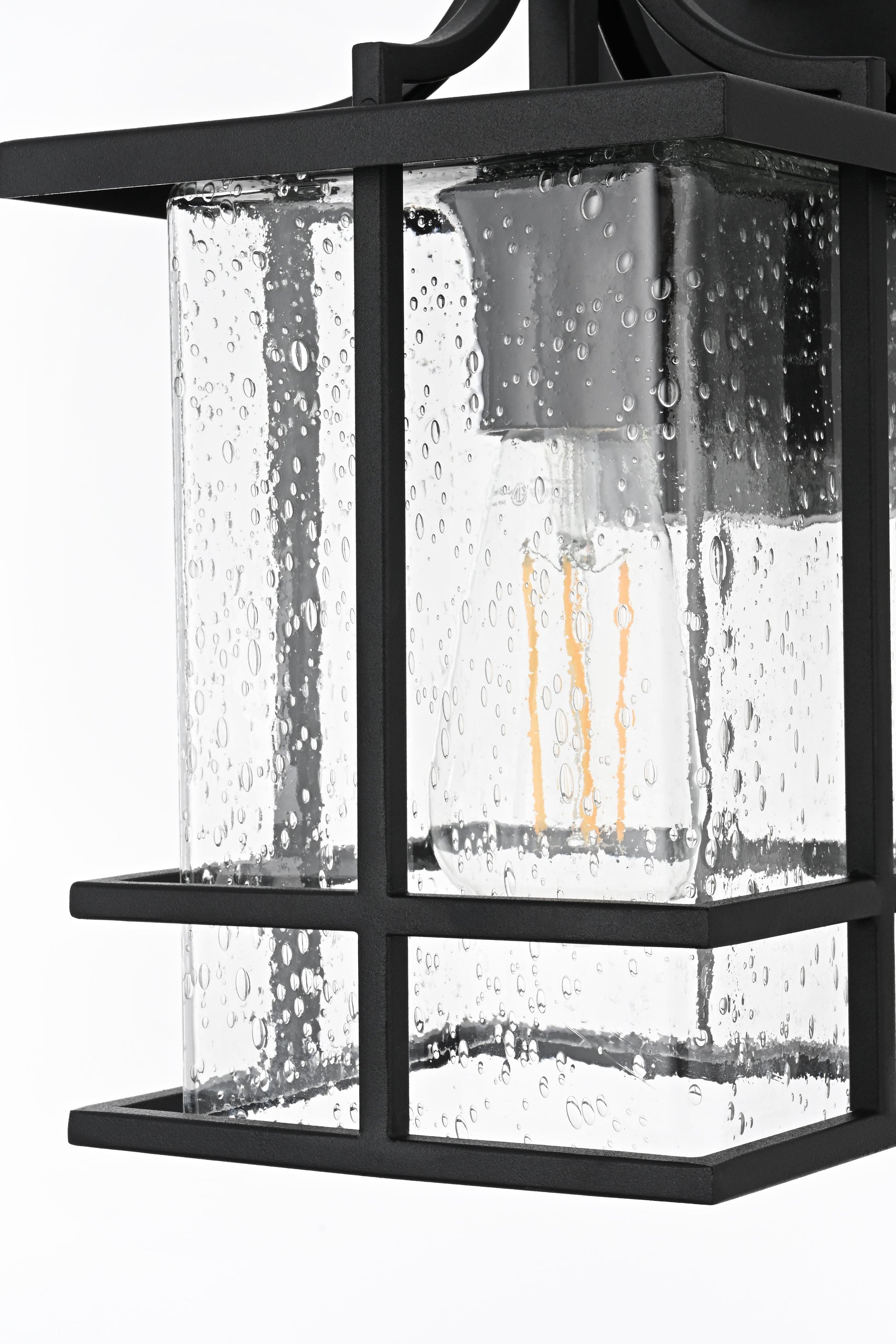 Enhance your home's exterior with this distinctive outdoor wall sconce, crafted from durable iron and elegantly accented with clear seeded glass. The architectural iron frame adds a modern yet understated charm, making it perfect for a range of outdoor spaces. The seeded glass panels softly diffuse the light, creating an inviting glow that’s ideal for enhancing entryways, patios, or garden pathways. Built to withstand various weather conditions, this outdoor light blends aesthetic beauty with functionality to elevate the appearance of your home's exterior.