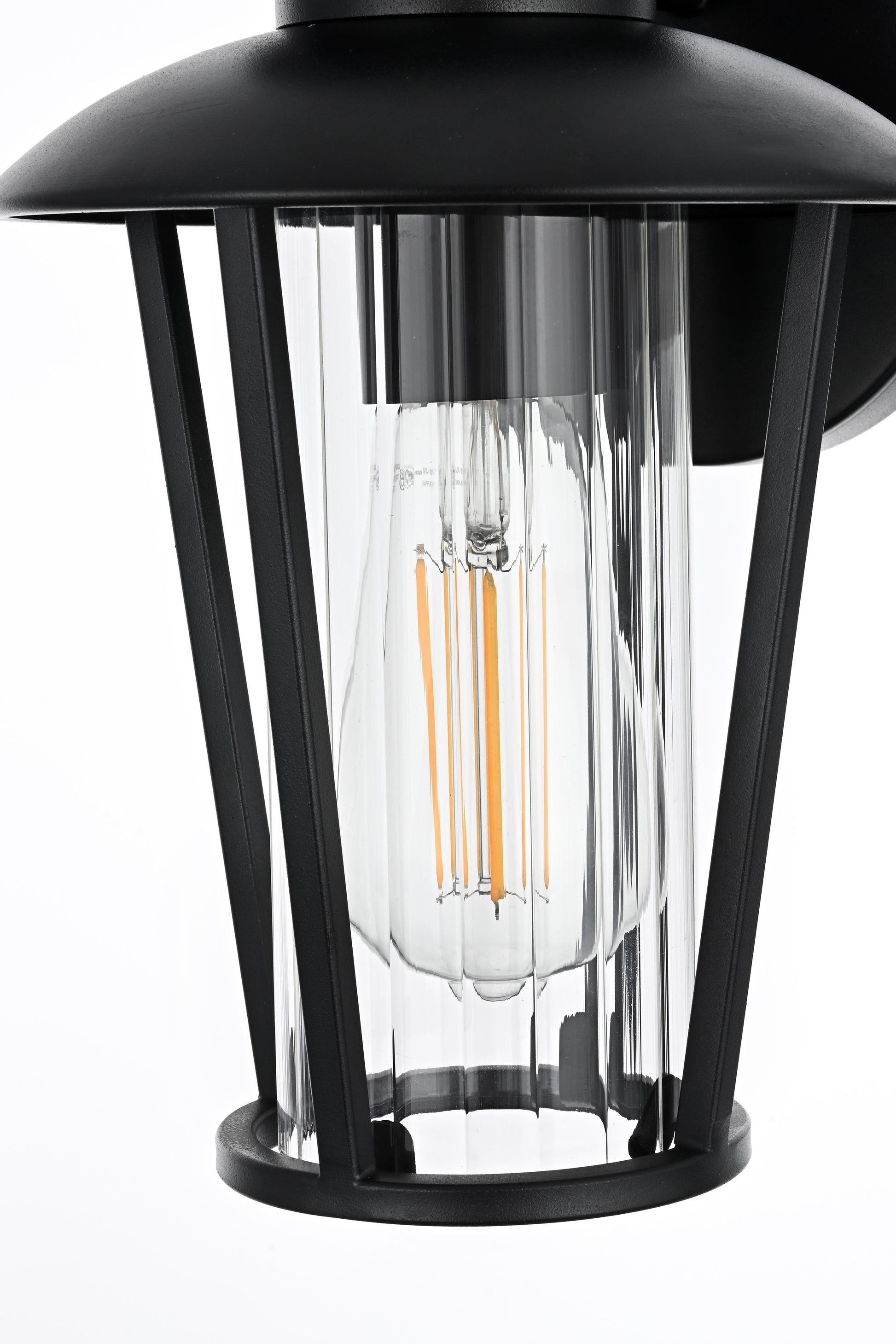 Add a sophisticated touch to your outdoor space with this beautifully crafted outdoor wall sconce. Featuring cylindrical fluted glass, this sconce provides a dynamic play of light and shadow, creating a warm and inviting glow. The black iron frame is both strong and refined, offering an industrial yet versatile look that fits well with various exterior decor styles. The cylindrical shape adds depth, while the vertically fluted glass texture allows light to refract in subtle, intriguing ways. This wall sconce includes an E26 socket base, making it compatible with a variety of bulb styles, from classic Edison to modern LEDs. Whether used to illuminate your patio or add character to your front porch, this sconce is the perfect combination of beauty and durability, ready to enhance the charm and safety of your home.