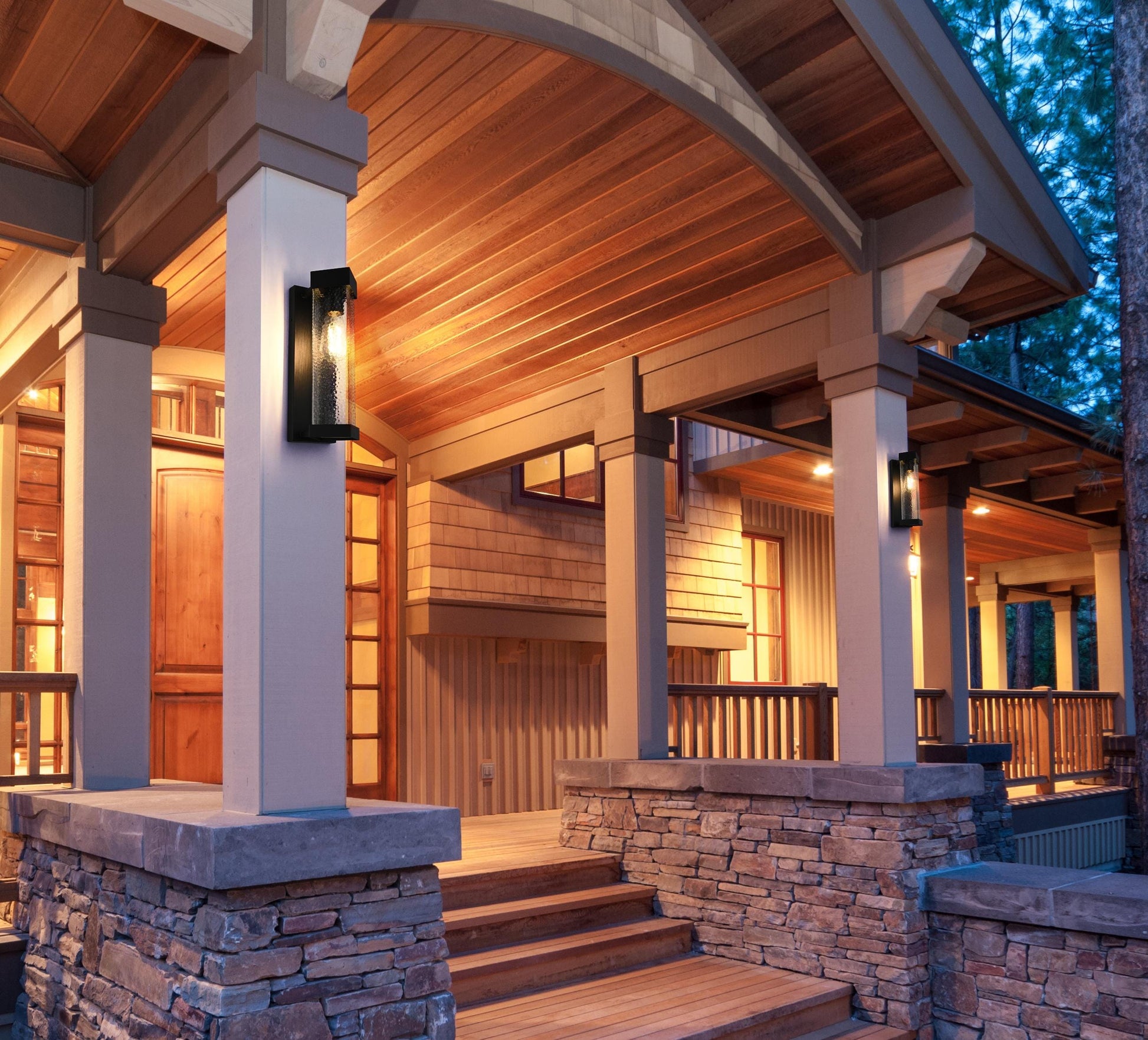 Bring a refined touch to your exterior spaces with this stunning outdoor wall sconce. The design features a black iron frame with a tall rectangular silhouette, providing a timeless and bold statement. The textured, rippled glass panel emits a diffused and inviting light, creating a beautiful ambient glow. The E26 socket offers compatibility with a range of light bulb types, including energy-efficient LED options, while the rugged iron construction ensures durability against the elements. The sconce’s structured aesthetic, topped and bottomed with iron frames, embodies both strength and sophistication, making it ideal for doorways, patios, or walkways.
