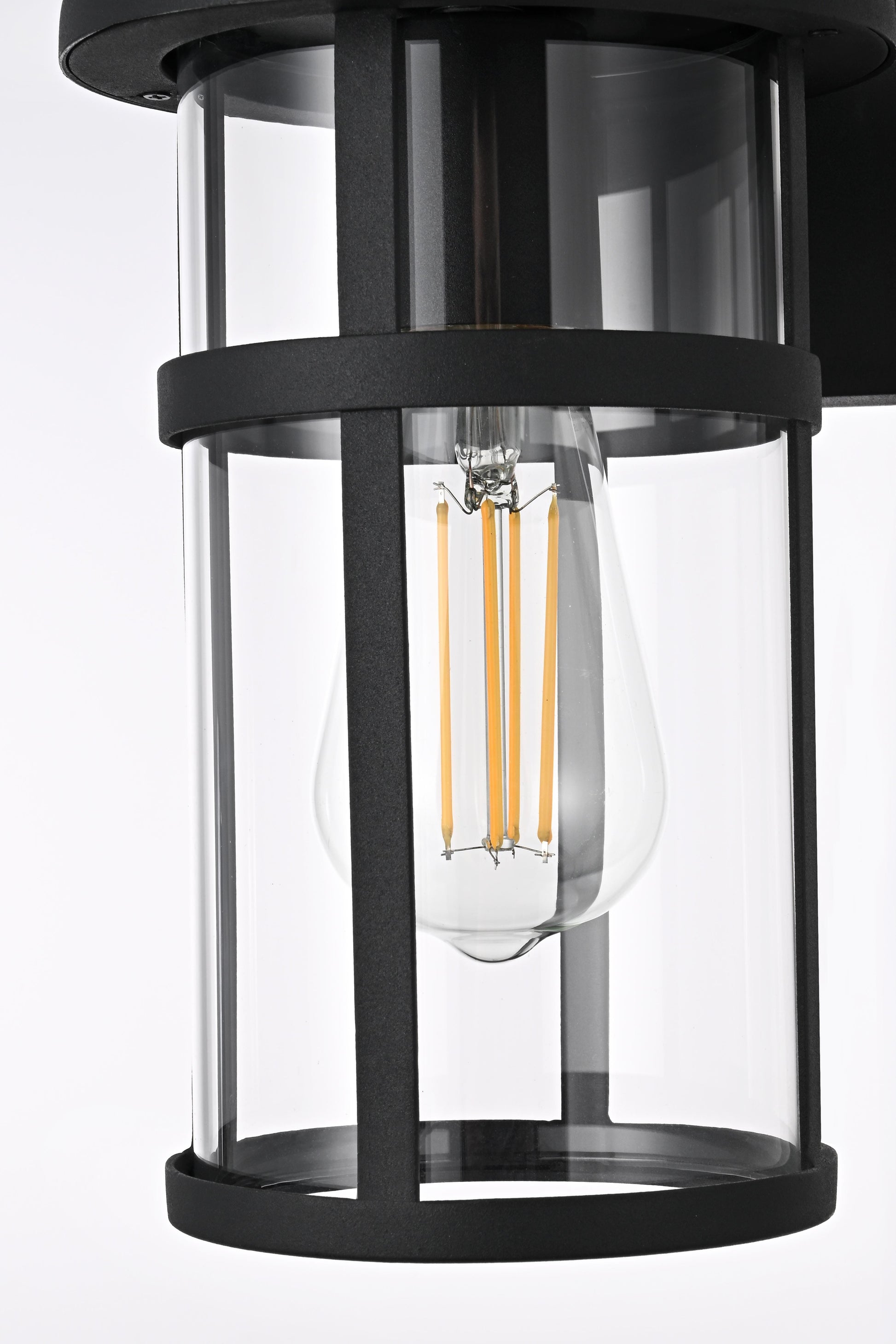 Enhance your outdoor space with this sleek and modern cylindrical wall light, designed to bring style and functionality to any exterior. The clear glass panels provide maximum illumination, allowing the bulb’s glow to shine through while adding an airy, open feel. Two horizontal metal trim accents add a bold touch, reinforcing the structured frame while maintaining a refined aesthetic. The open-bottom design ensures effortless maintenance and direct downward lighting, making it both practical and visually appealing. Built from durable iron with a matte black finish, this fixture is wet rated for all-weather resilience. Featuring an E26 socket (bulb not included), it allows for customizable lighting to suit your outdoor ambiance. Whether placed along an entryway, patio, or garage, this striking wall light is the perfect combination of contemporary design and everyday functionality.