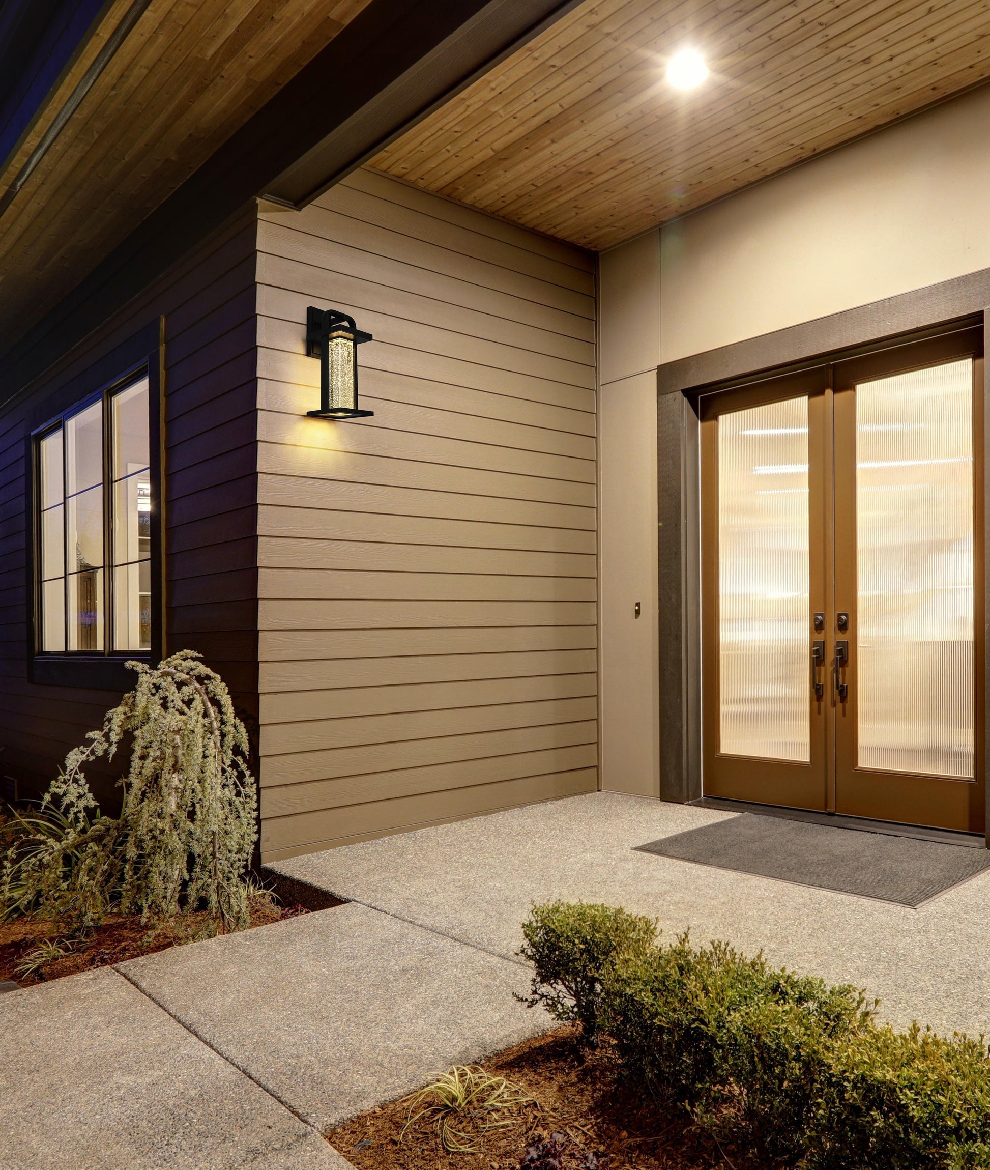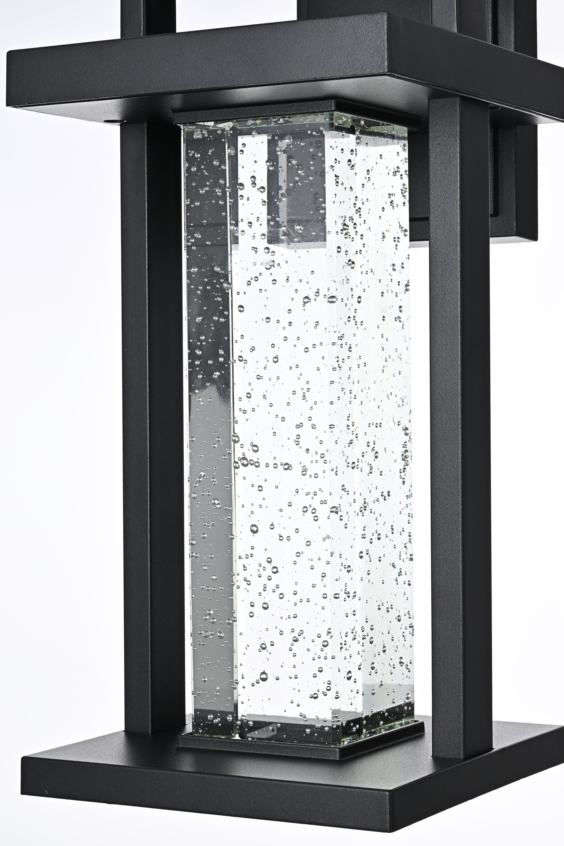 Enhance your home's exterior with this modern LED wall sconce, designed with a bold geometric frame and a distinctive looped handle that adds a touch of architectural elegance. The sturdy black metal construction supports a thick 3-inch clear seedy glass, which beautifully scatters light for a warm, inviting glow. Built for durability, this fixture features a strong iron and aluminum frame, paired with an ETL Wet Rated certification, making it perfect for porches, patios, and entryways. With an integrated 11W LED, this light delivers a soft 3000K illumination at 380 lumens, complemented by a 120-degree beam angle and 90 CRI for true-to-life color accuracy. The compact 4”L x 1”W x 7.6”H backplate ensures a secure and seamless installation, while its dimmable functionality allows you to adjust brightness to suit any mood. Hardwired for a professional, lasting connection, this sconce blends modern sophistication with functional elegance, making it an ideal choice for contemporary outdoor spaces. Built with marine-grade, corrosion-resistant aluminum, this sconce withstands coastal conditions for long-lasting durability.