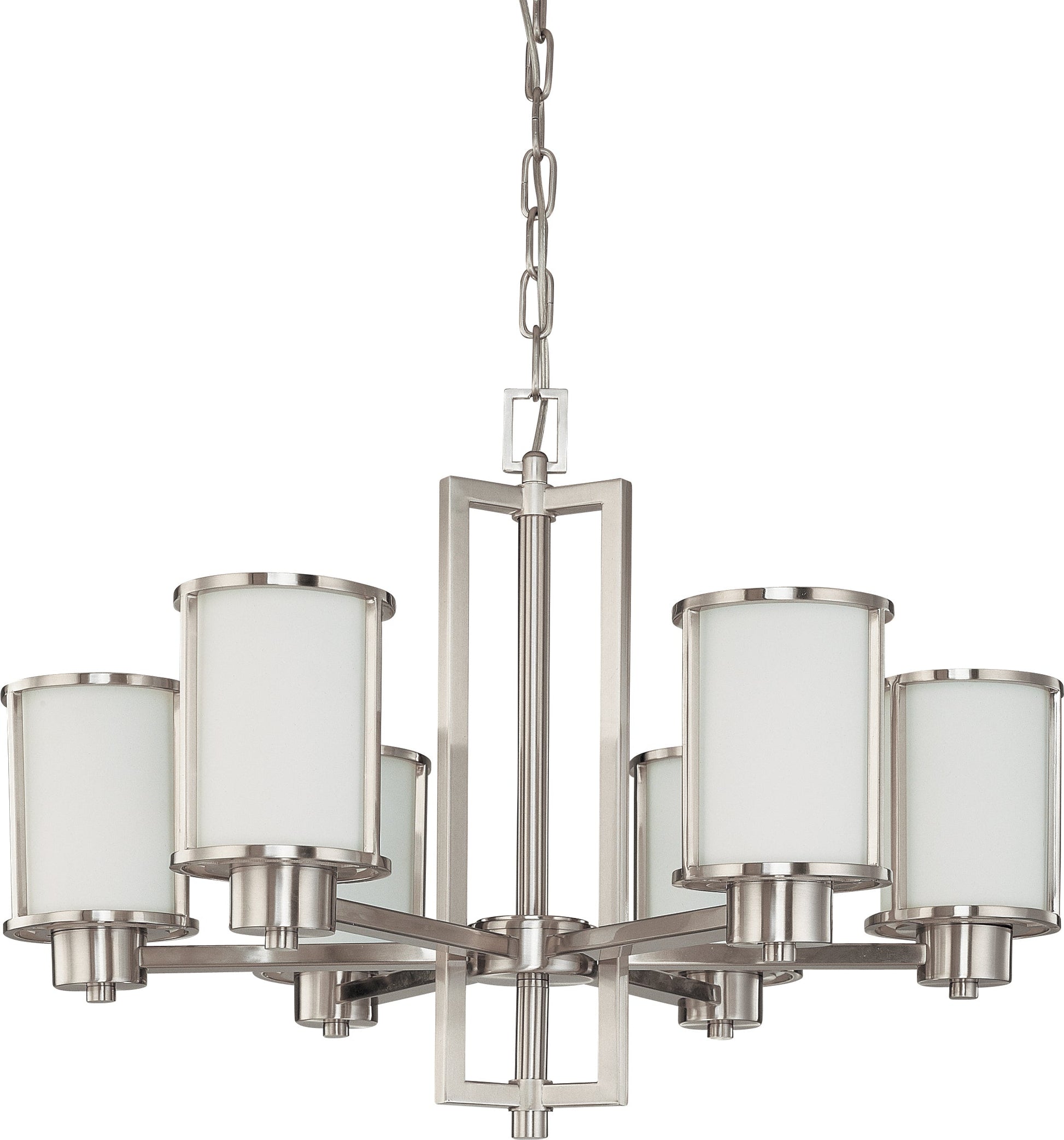 Odeon; 6 Light; (convertible up/down) Chandelier with Satin White Glass