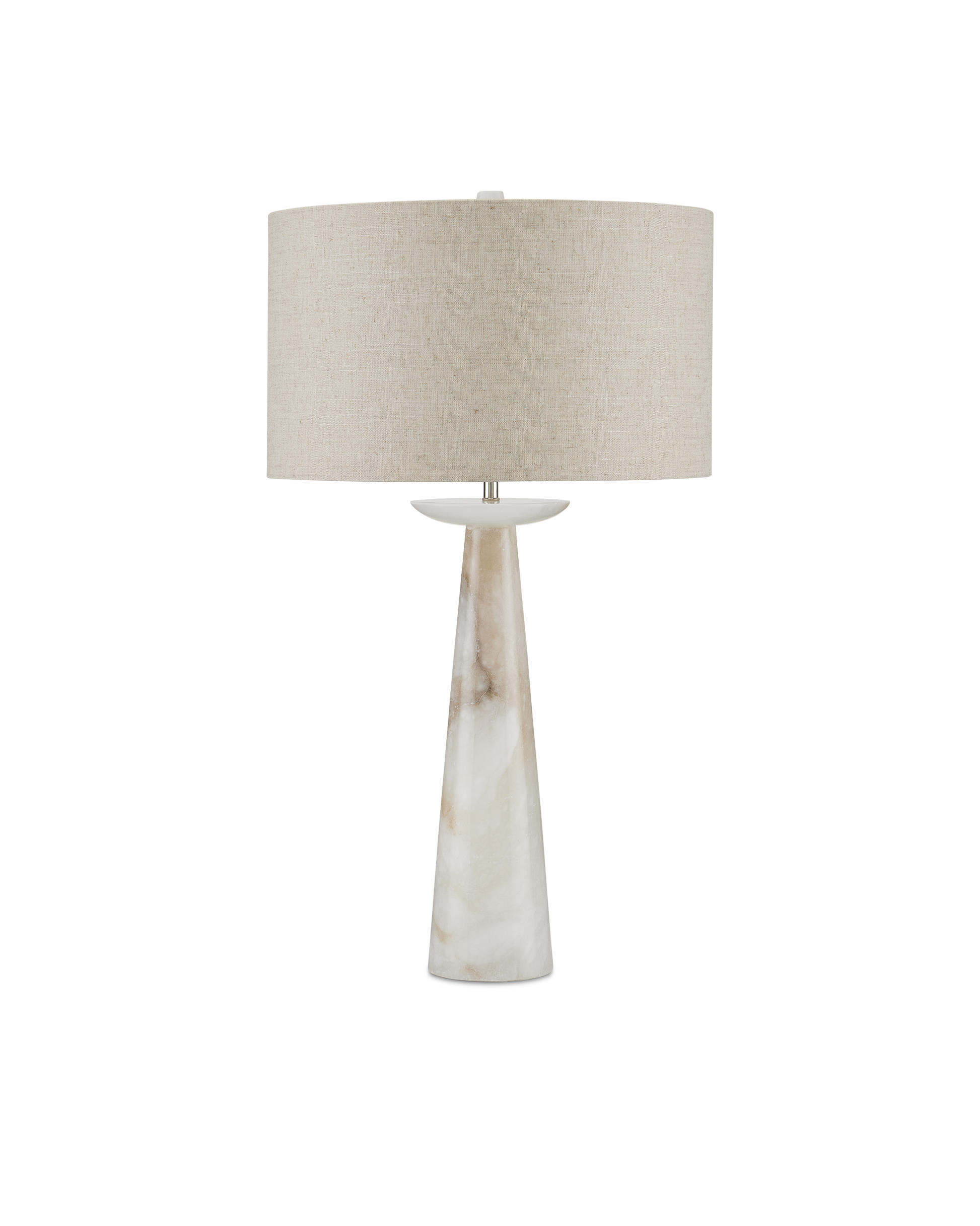 The beauty of natural stone brings the Pharos Alabaster Table Lamp an exquisite personality. The graceful shape of this dreamy table lamp was conceived by Tom Caldwell, who admits this is one of his all-time favorite pieces. Though the shape is simple and traditional, the production of this lamp requires the most modern equipment. The stone is quarried from a mine near the Taj Mahal and the factory that hones it originally made trinkets for visitors to the famed palace. The Pharos is topped with a natural linen shade.