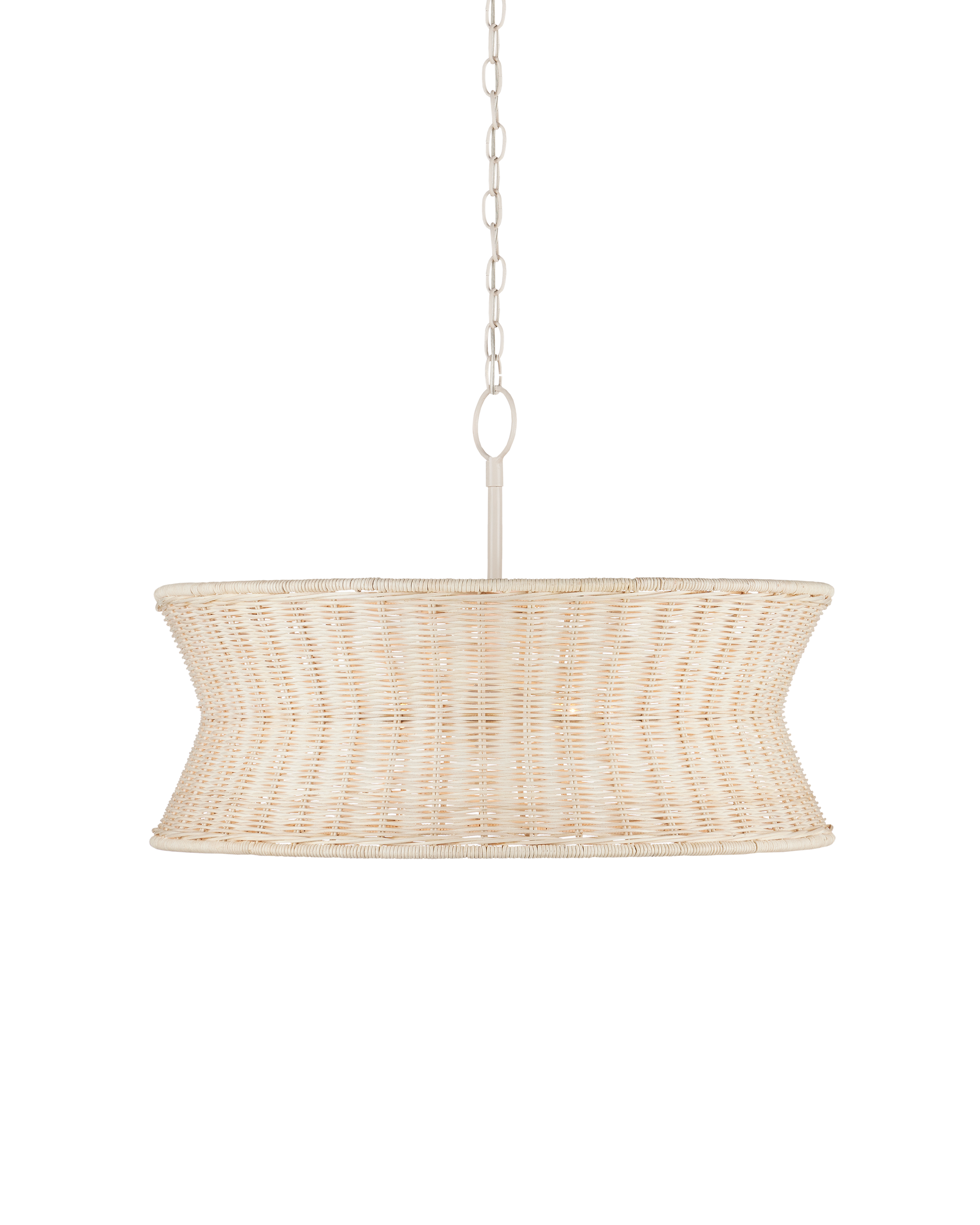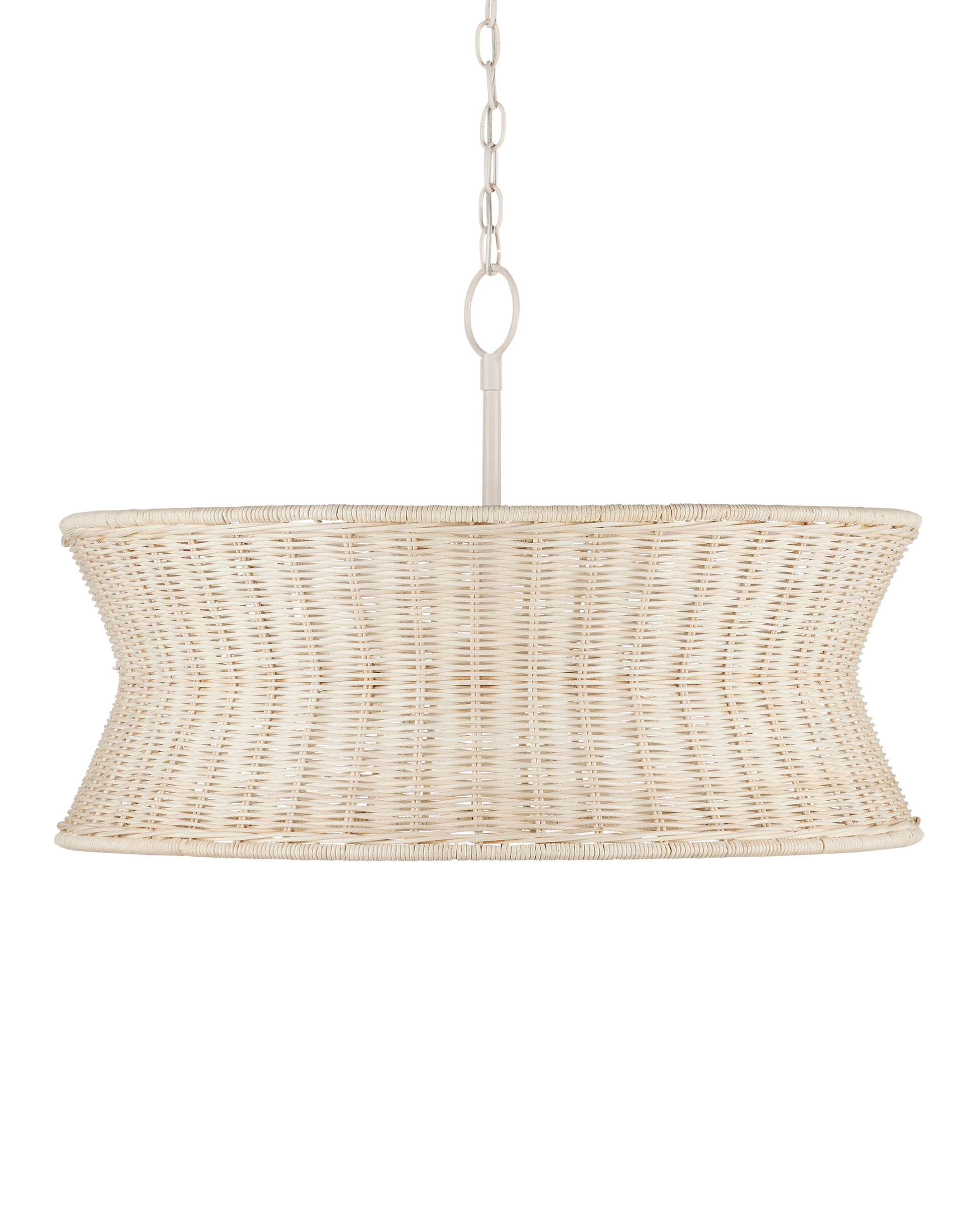 Lightening the profile of the Phebe Small Chandelier is the vanilla finish on the hardware and the fact that the wicker shade has been bleached. This beige chandelier that illustrates the hallmark of artisanal fixtures was designed by Clarence Mallari, his keen understanding of finely woven natural materials showing in the design. Adjustable from 26" to 93.5" with use of included chain/rod kit/cable. If your space calls for a longer drop, additional chain/rods/cable is available for purchase.