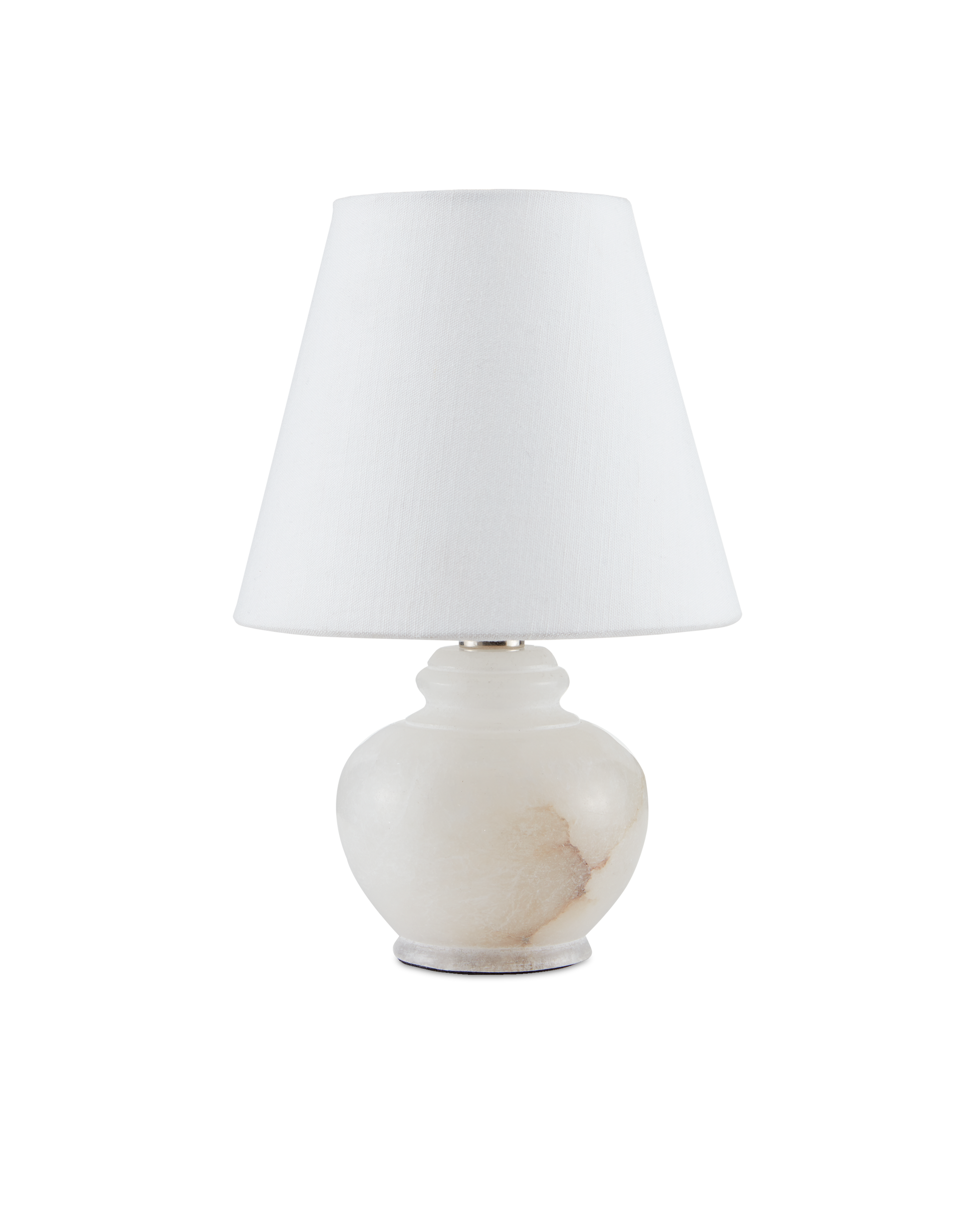 The Piccolo Mini Table Lamp is a very petite alabaster lamp that was modeled after a vintage design owned by a member of the Currey & Company product development team. At 4.5 inches high to the shade, the little lamp is perfect for sliding into a bookcase. But it is so beautifully luminous when lit, it will hold its own in decorative arrangements.
