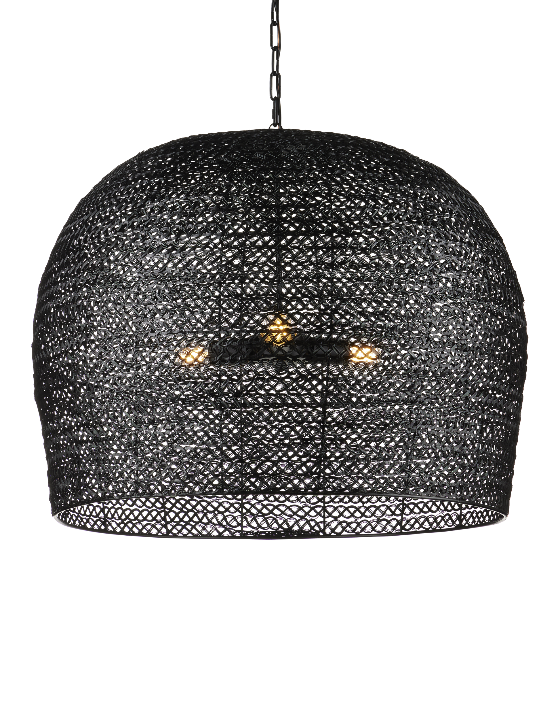 The Piero Black Large Chandelier may appear to be woven from a natural plant material but it is made of iron in a satin black finish to make it an exemplar of the skills that our craftspeople bring to their work. When the black chandelier is illuminated, textural patterns will enliven surrounding surfaces; when it is not, the flowing weave will continue to be a textural accent in a space. Adjustable from 33" to 99" with use of included chain/rod kit/cable. If your space calls for a longer drop, additional chain/rods/cable is available for purchase.