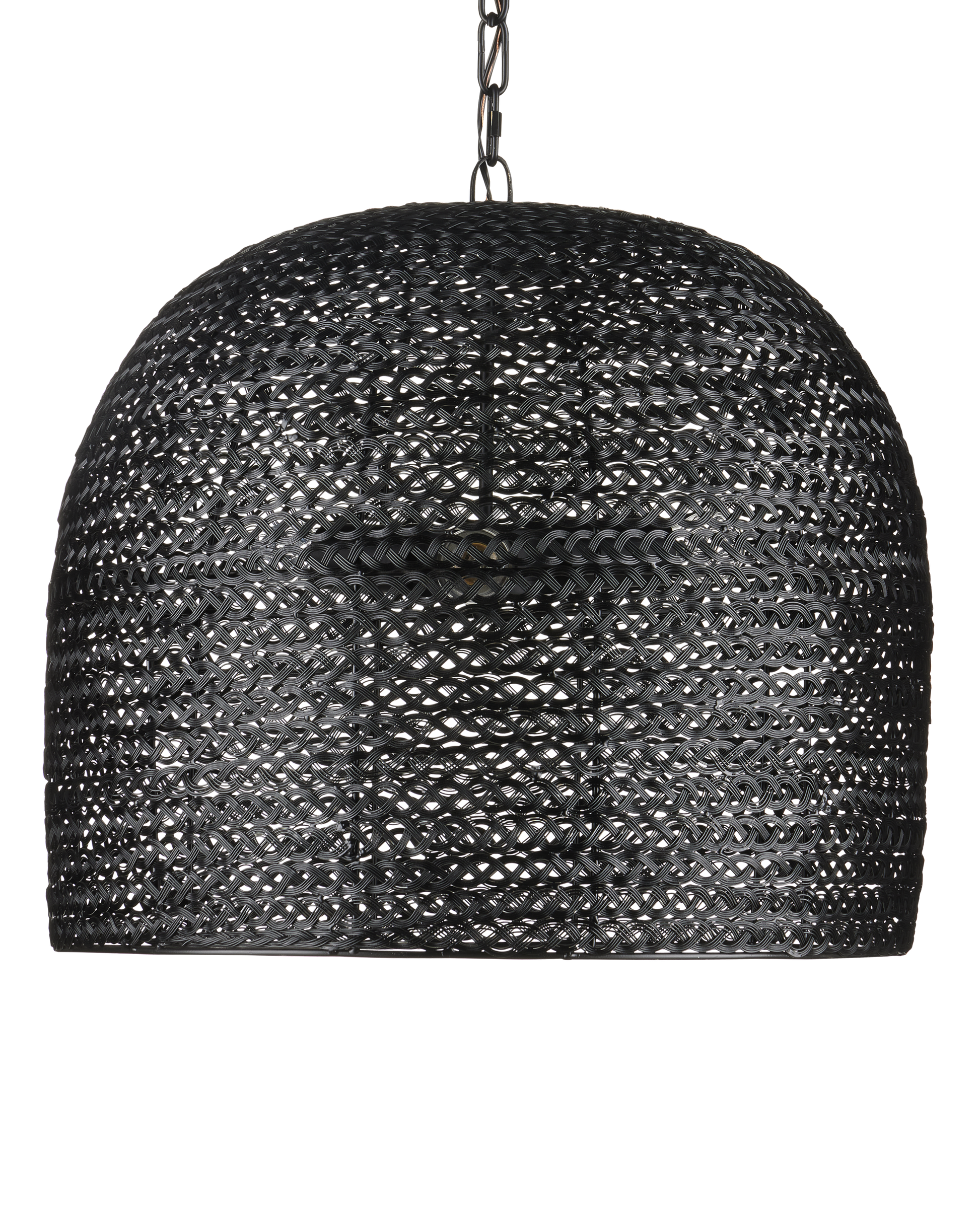 The Piero Medium Black Chandelier may appear to be woven from a natural plant material but it is made of iron in a satin black finish to make it an exemplar of the skills that our craftspeople bring to their work. When the black chandelier is illuminated, textural patterns will enliven surrounding surfaces; when it is not, the flowing weave will continue to be a textural accent in a space. Adjustable from 27.75" to 94" with use of included chain/rod kit/cable. If your space calls for a longer drop, additional chain/rods/cable is available for purchase.