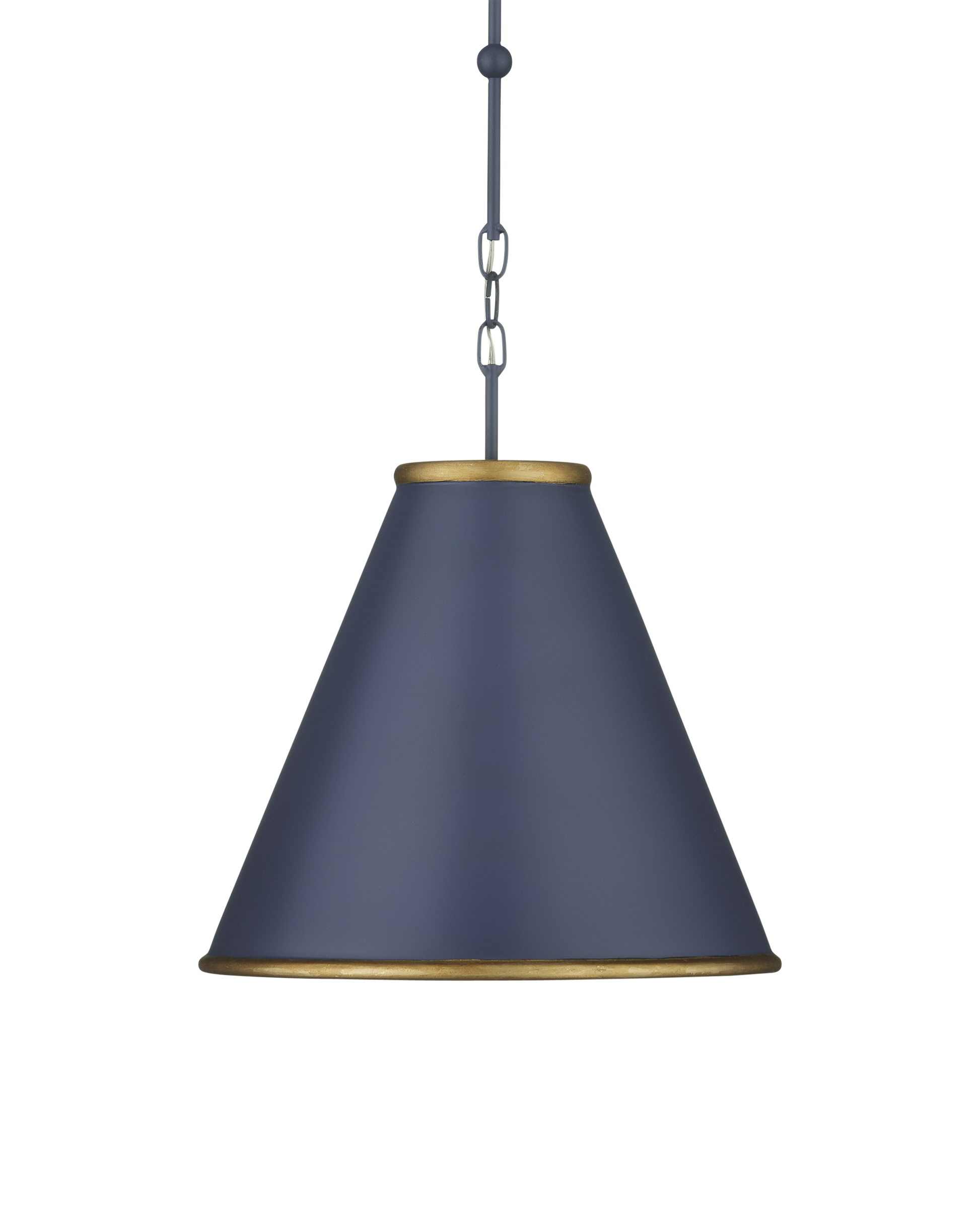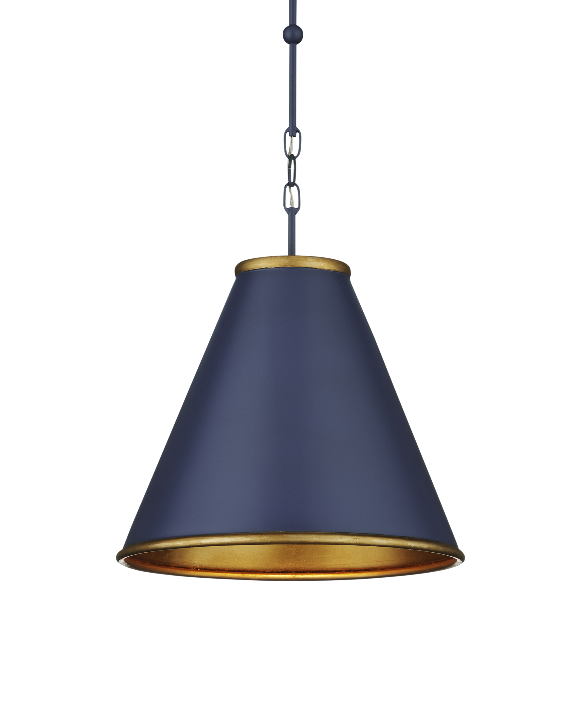 The Pierrepont Small Blue Pendant is made of wrought iron with a Hiroshi dark blue finish on its exterior and a contemporary gold leaf finish on the interior of its shade. The rolled edges of the rings connecting them, at the top and bottom of the pendant, gleam in a gold finish and are sophisticated details that bring an uptick in style to this handsome fixture. When simplicity is the aim, the Pierrepont will fit right in given the clean lines of the fixture's profile and its hanging hardware. Adjustable from 22" to 100" with use of included chain/rod kit/cable. If your space calls for a longer drop, additional chain/rods/cable is available for purchase.